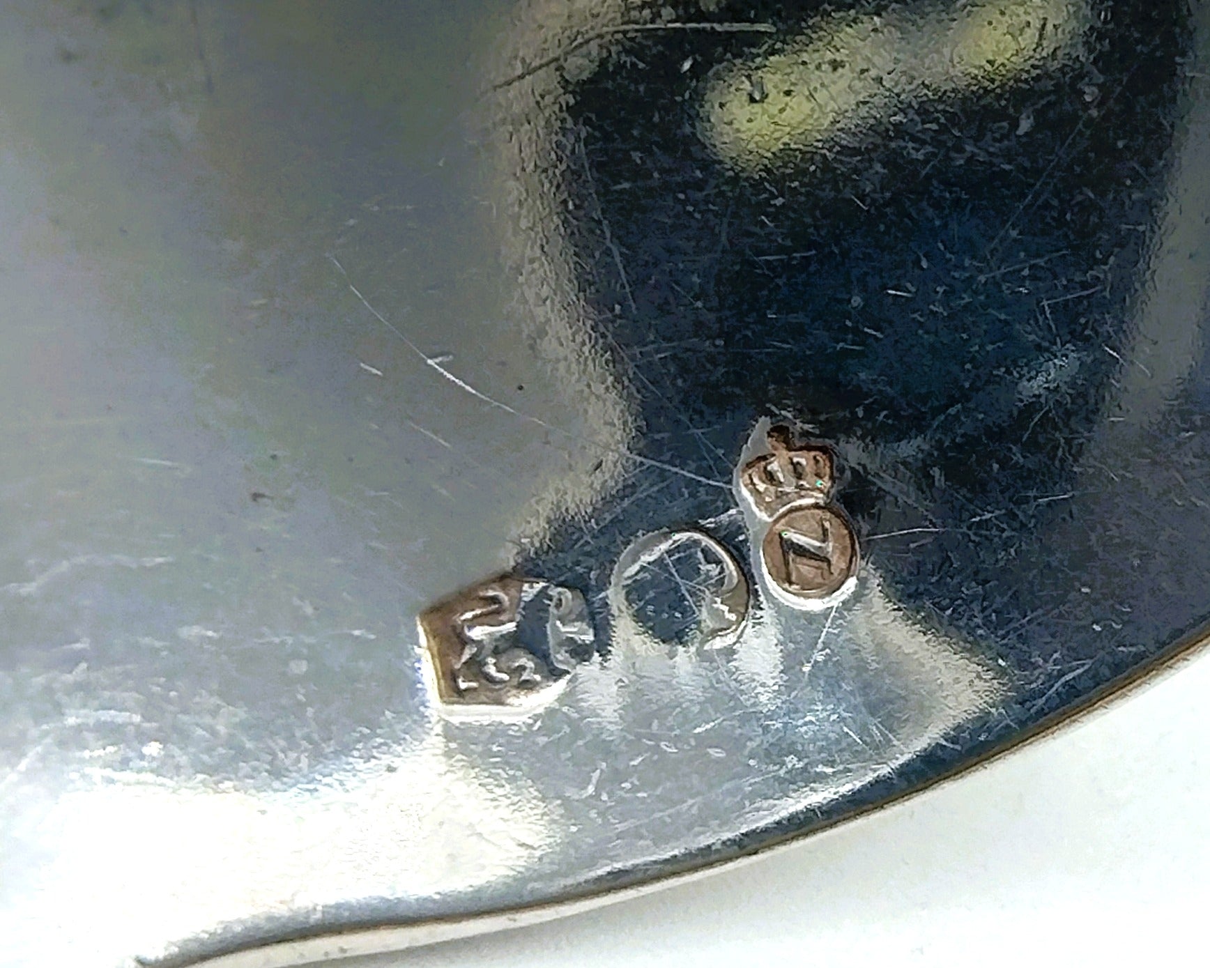 De roomlepel is gekeurd met het meesterkeur AxM, tweede gehaltekeur, minervakopje en de gekroonde jaarletter n voor 1948.