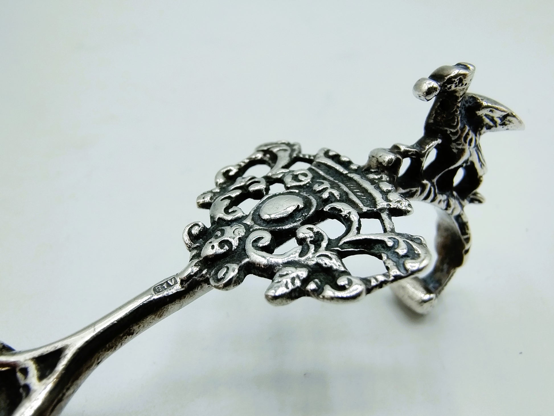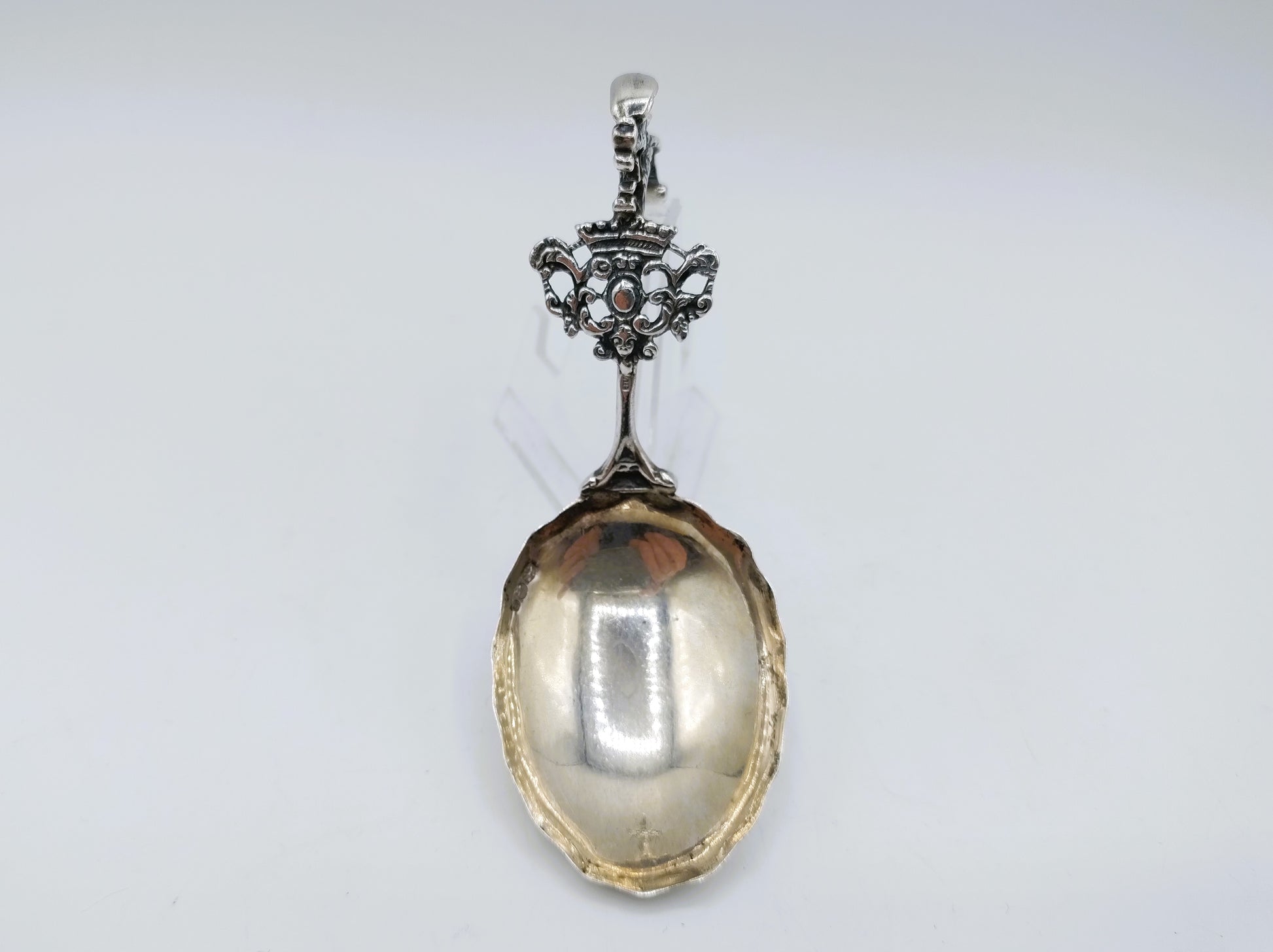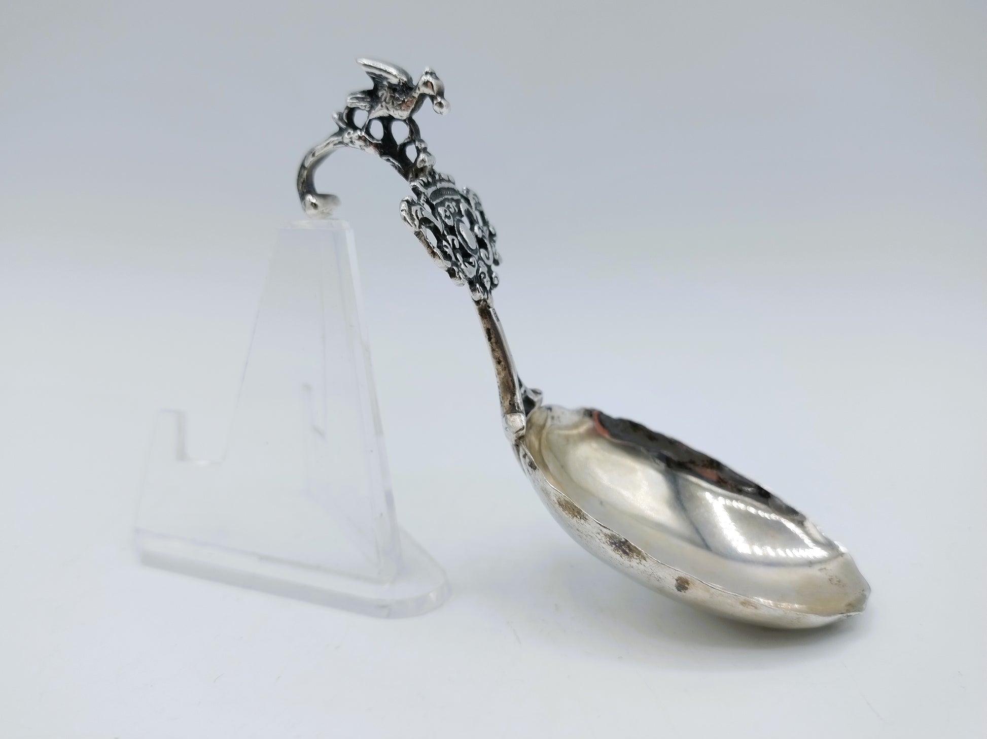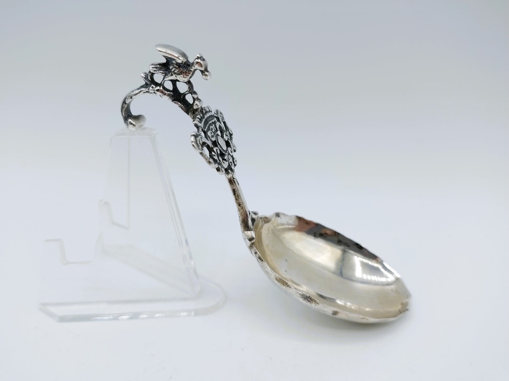 De roomlepel is voorzien van een draakachtig figuur als bekroning.