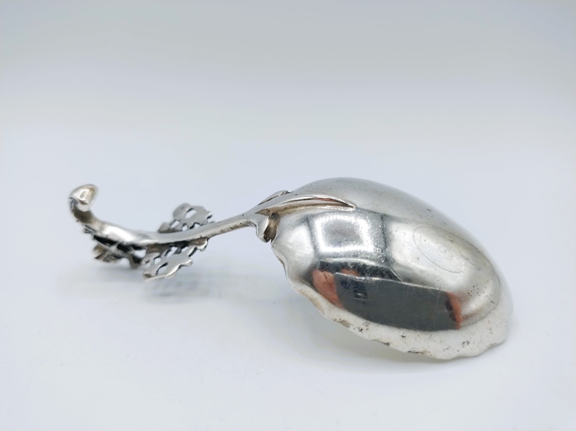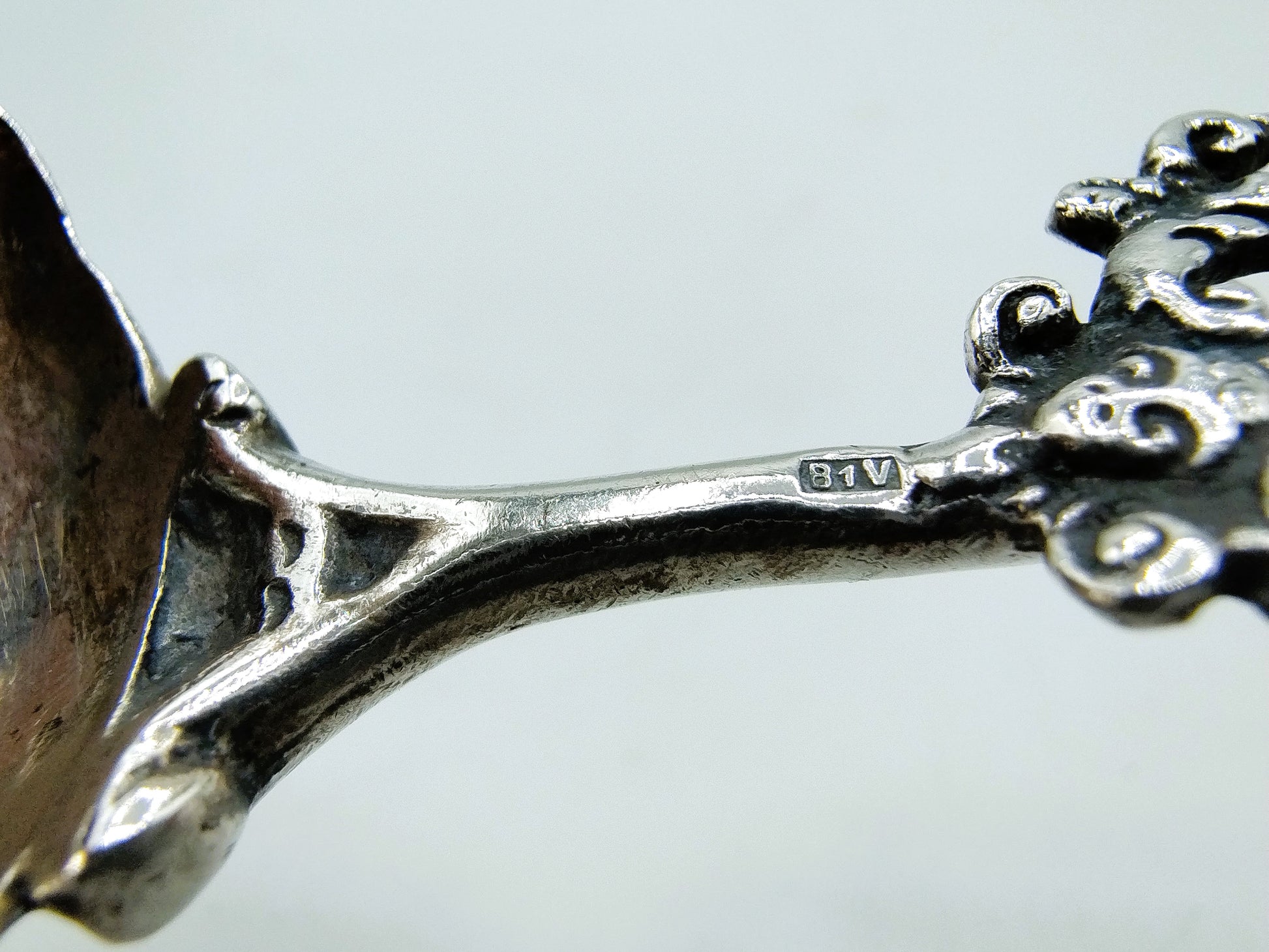 De lepel is gekeurd met meesterkeur B1V, minervakopje, tweede gehaltekeur en jaarletter B voor 1936.