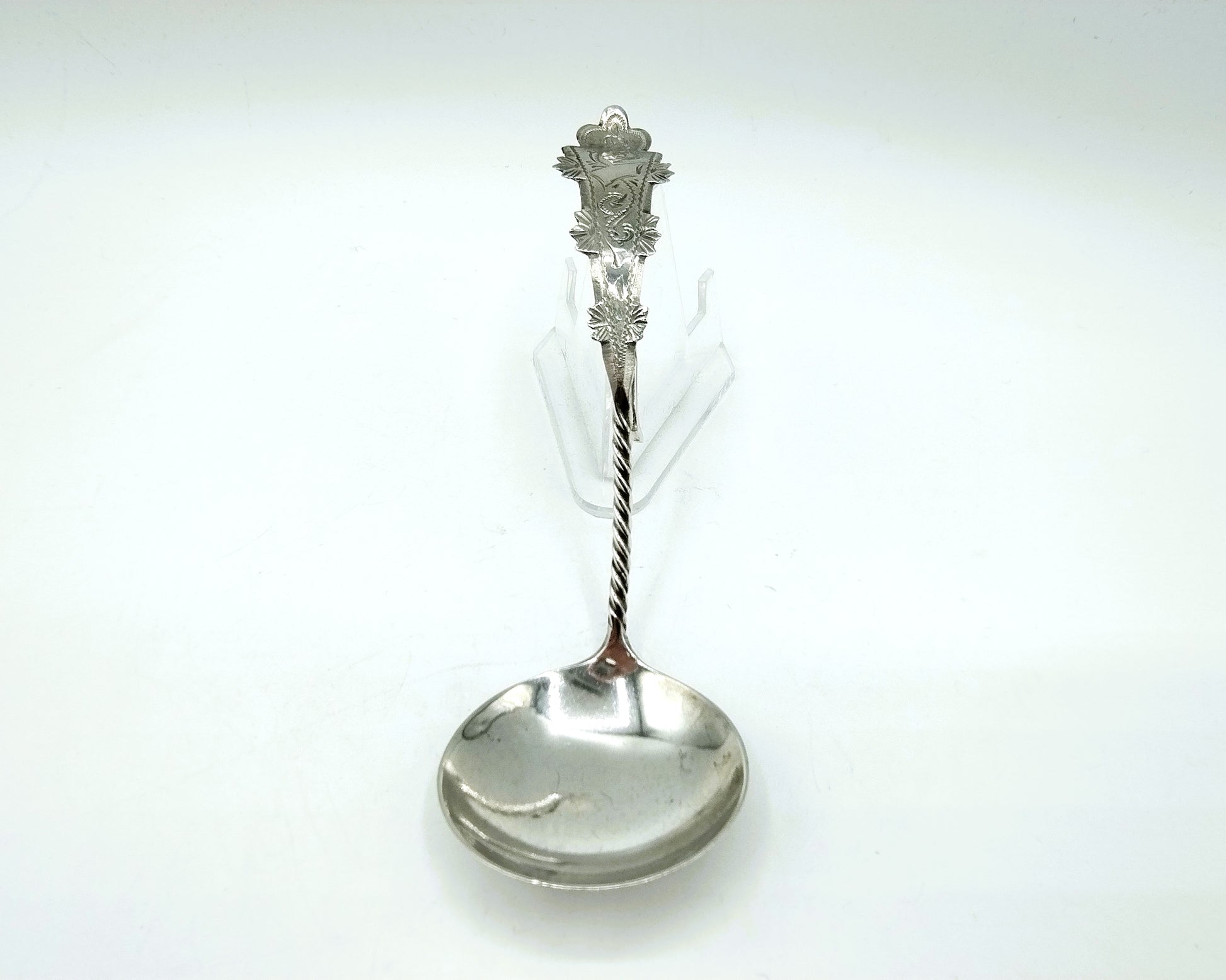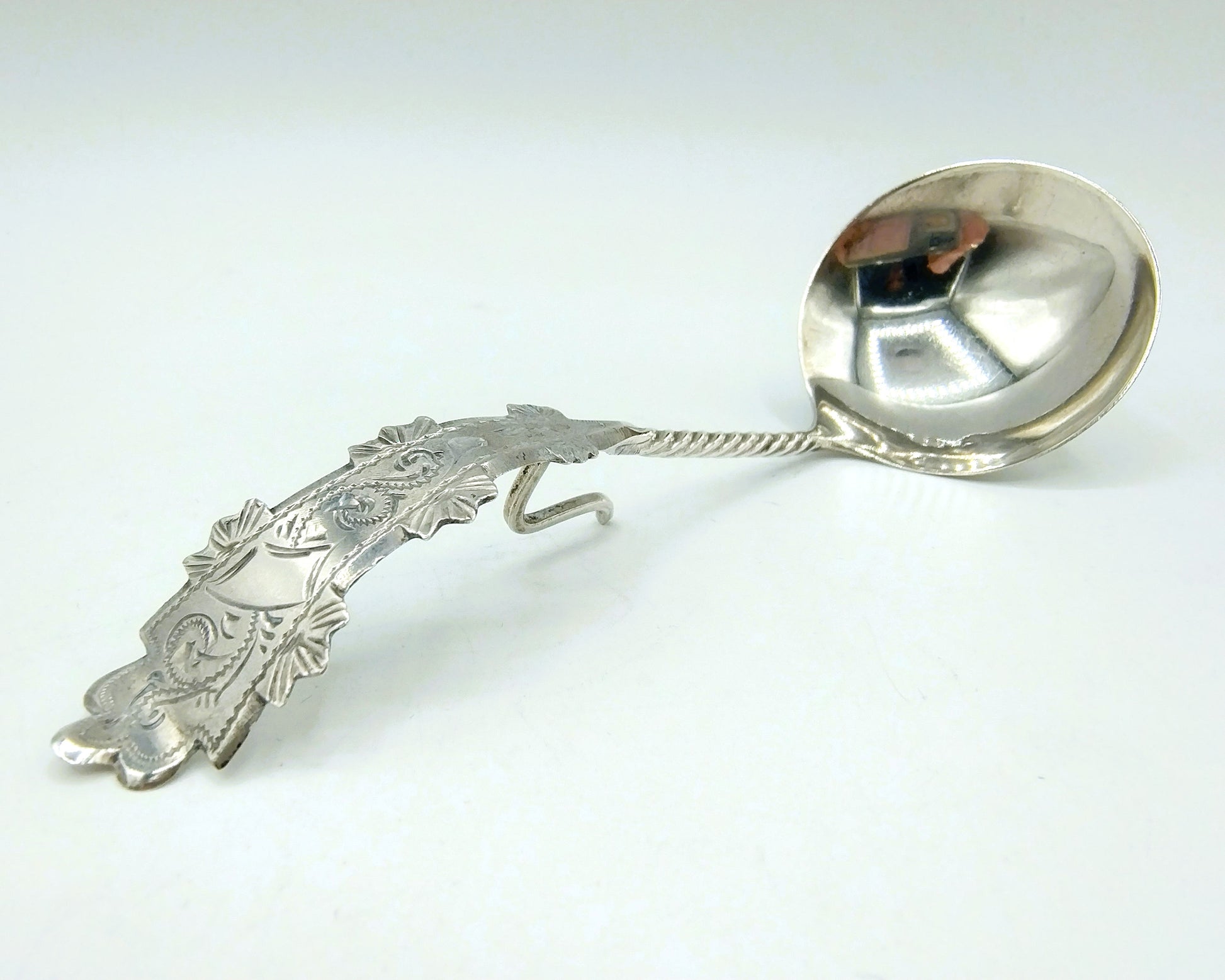 Zilveren roomlepel gemaakt door de zilversmid P. van Oostrom uit Schoonhoven.