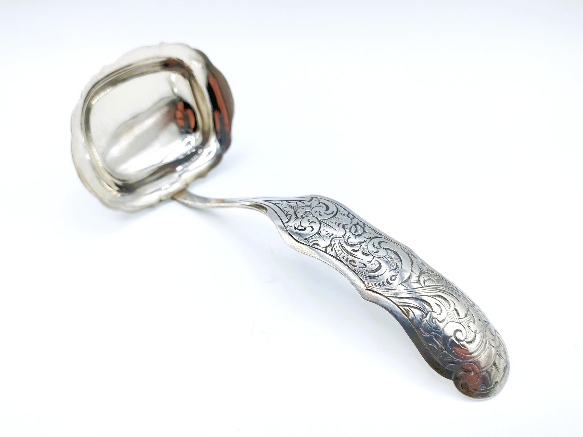 Zilveren jus- of sauslepel gemaakt door de zilversmid J. van Vorst uit Rotterdam.