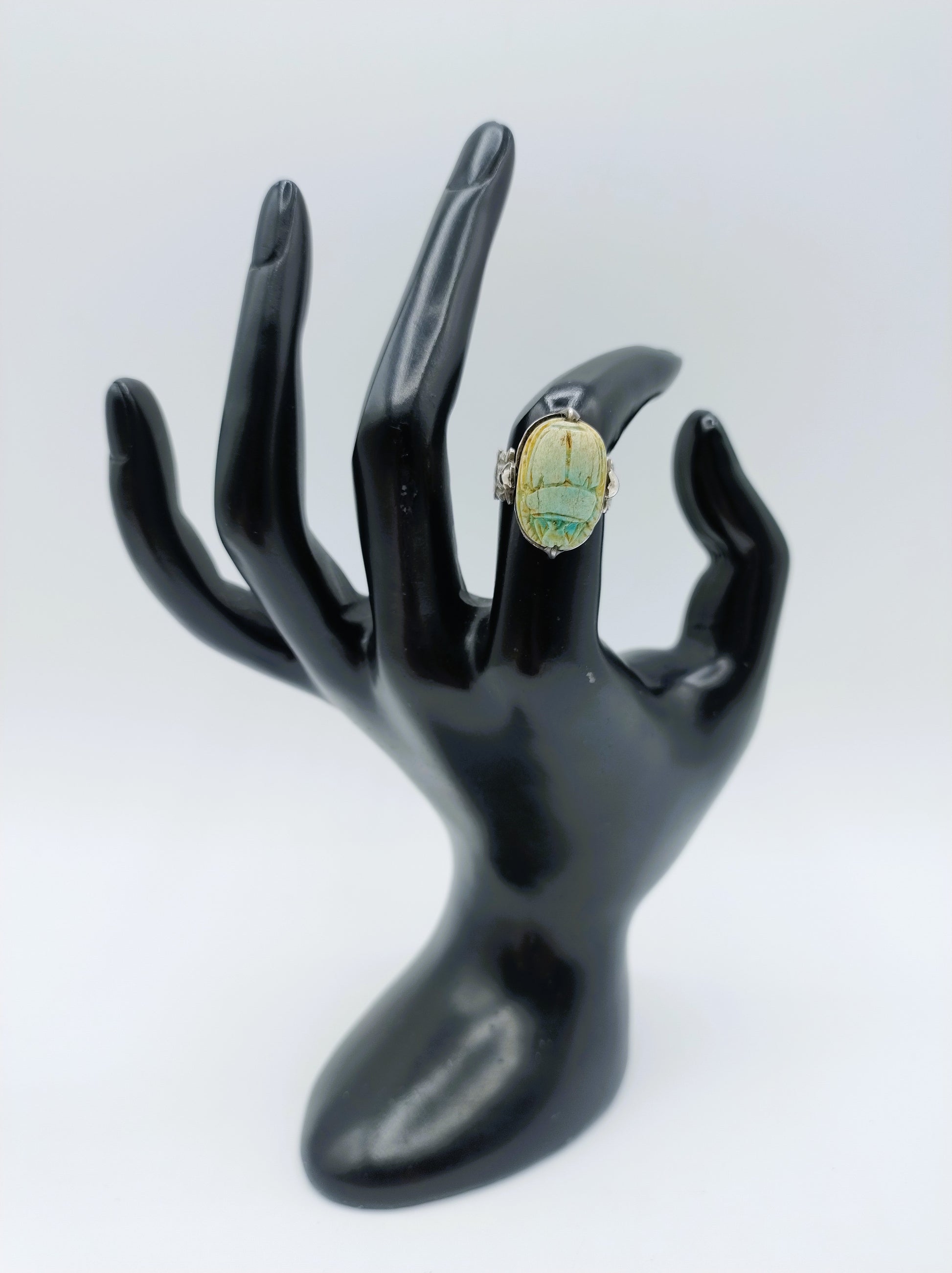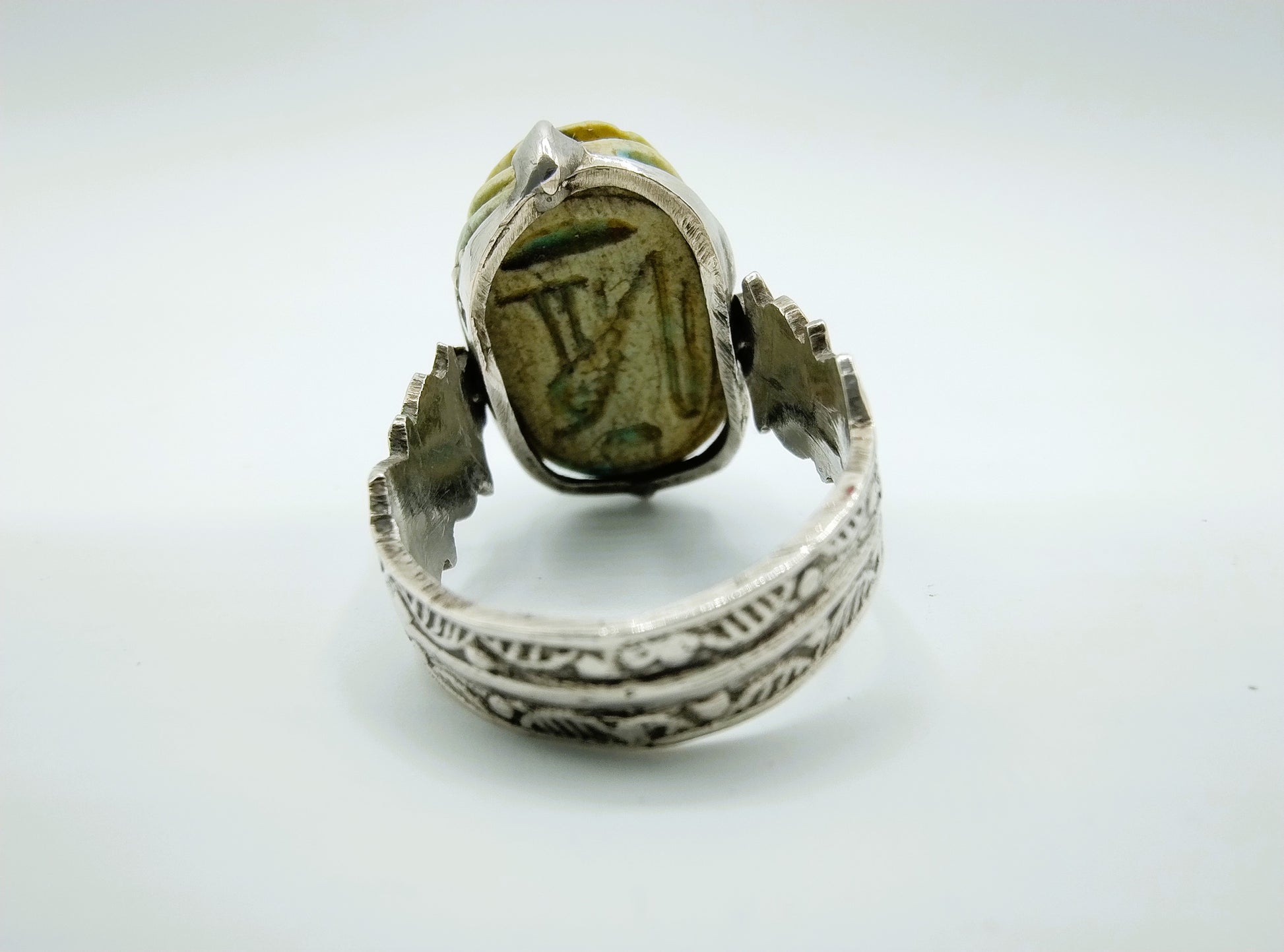De scarabee is gedetailleerd uitgewerkt en ook de binnenkant is voorzien van een afbeelding.