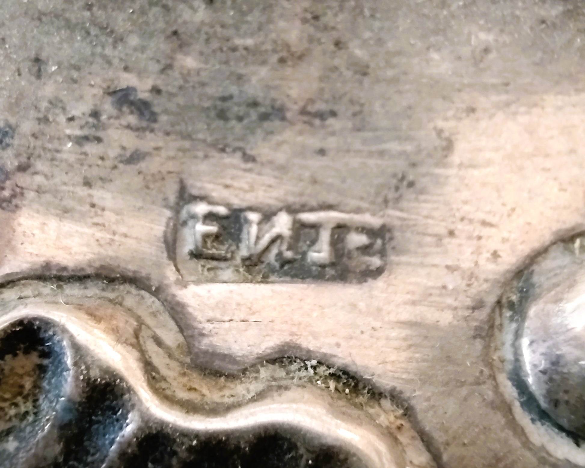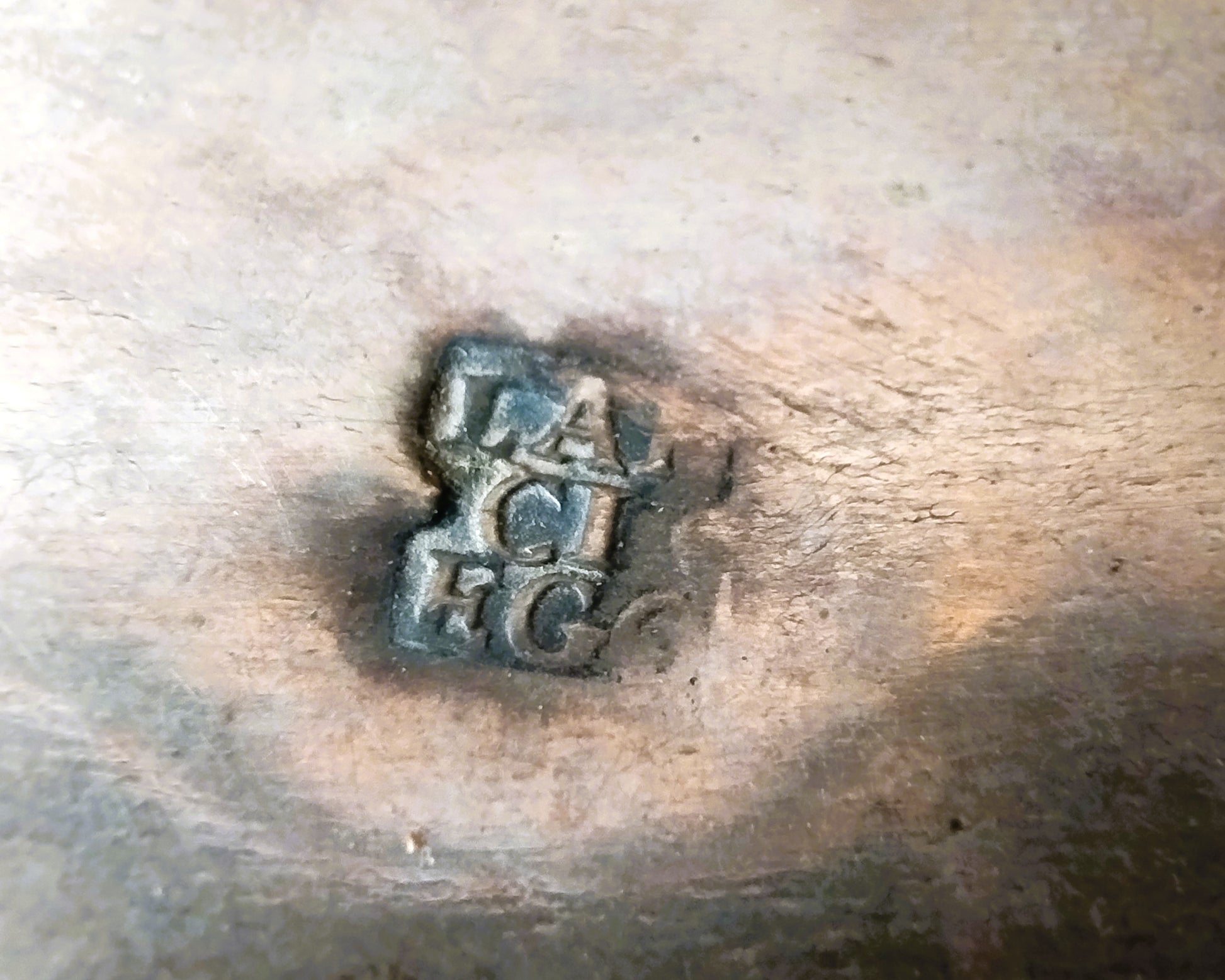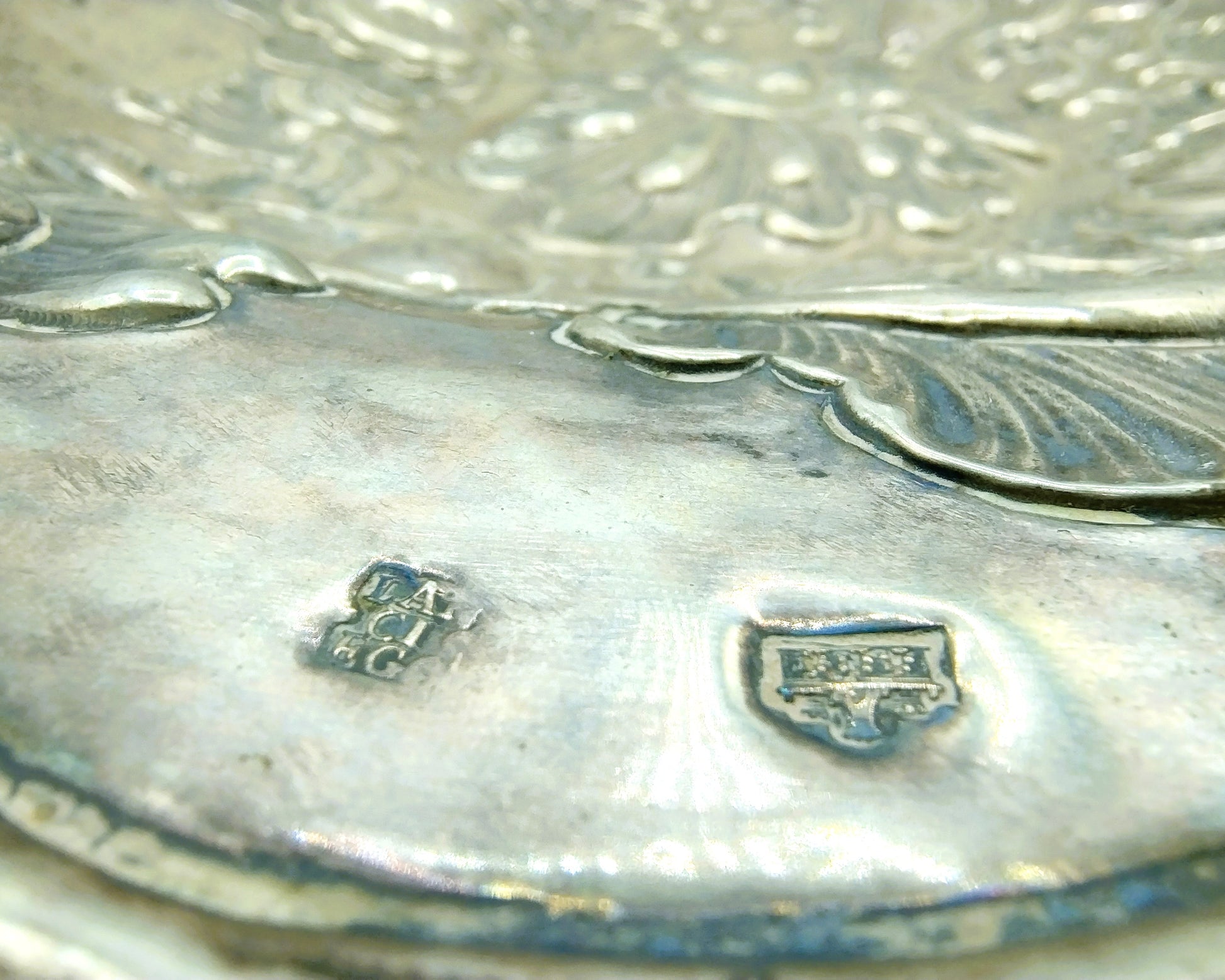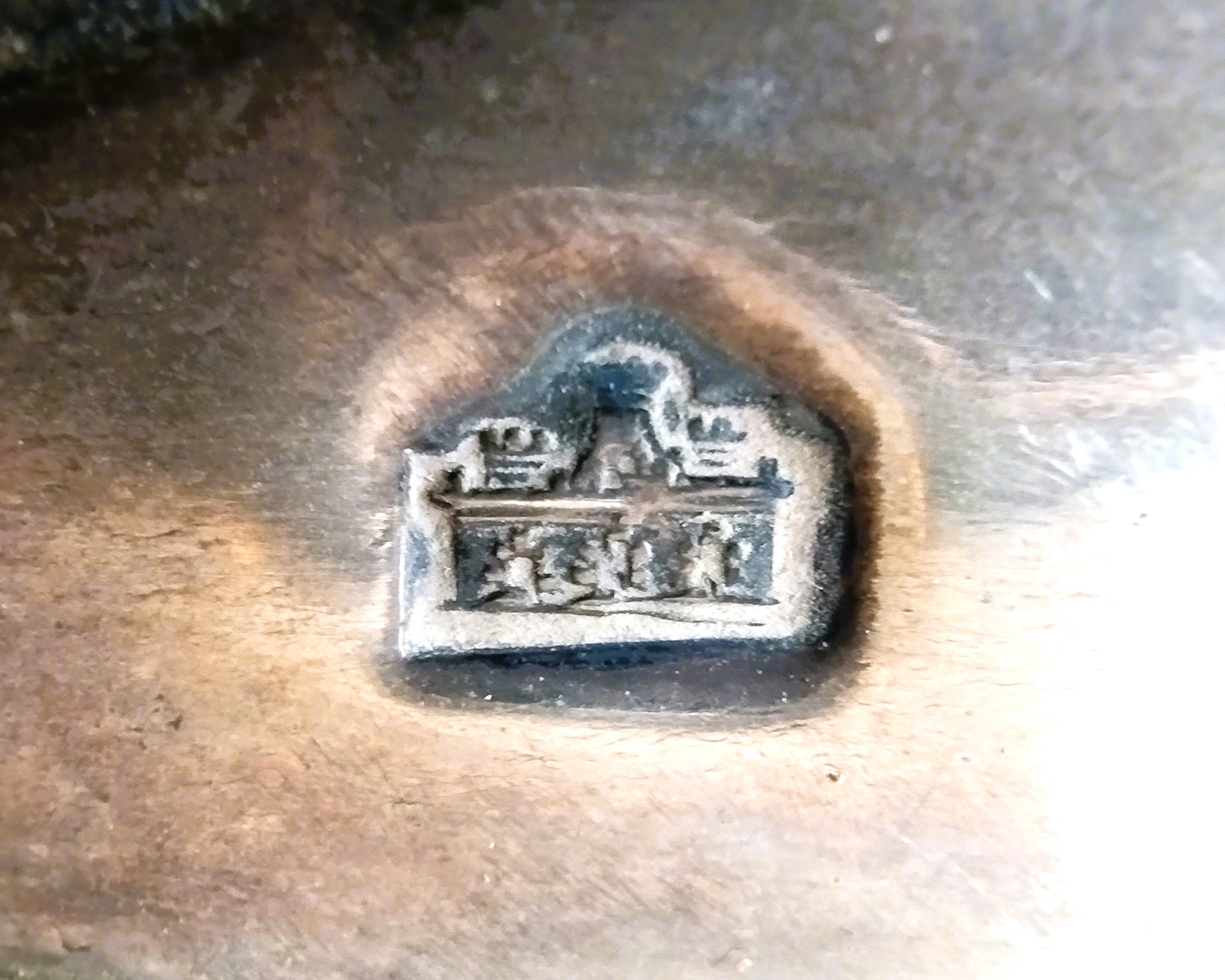 De zilveren schaal heeft diverse keuren: Stadskeur Logrono, Meesterkeur Francisco A. Gonzalez de Lanciego en een keur van ENTE. Waarschijnlijk de keurmeester (Essayeur).