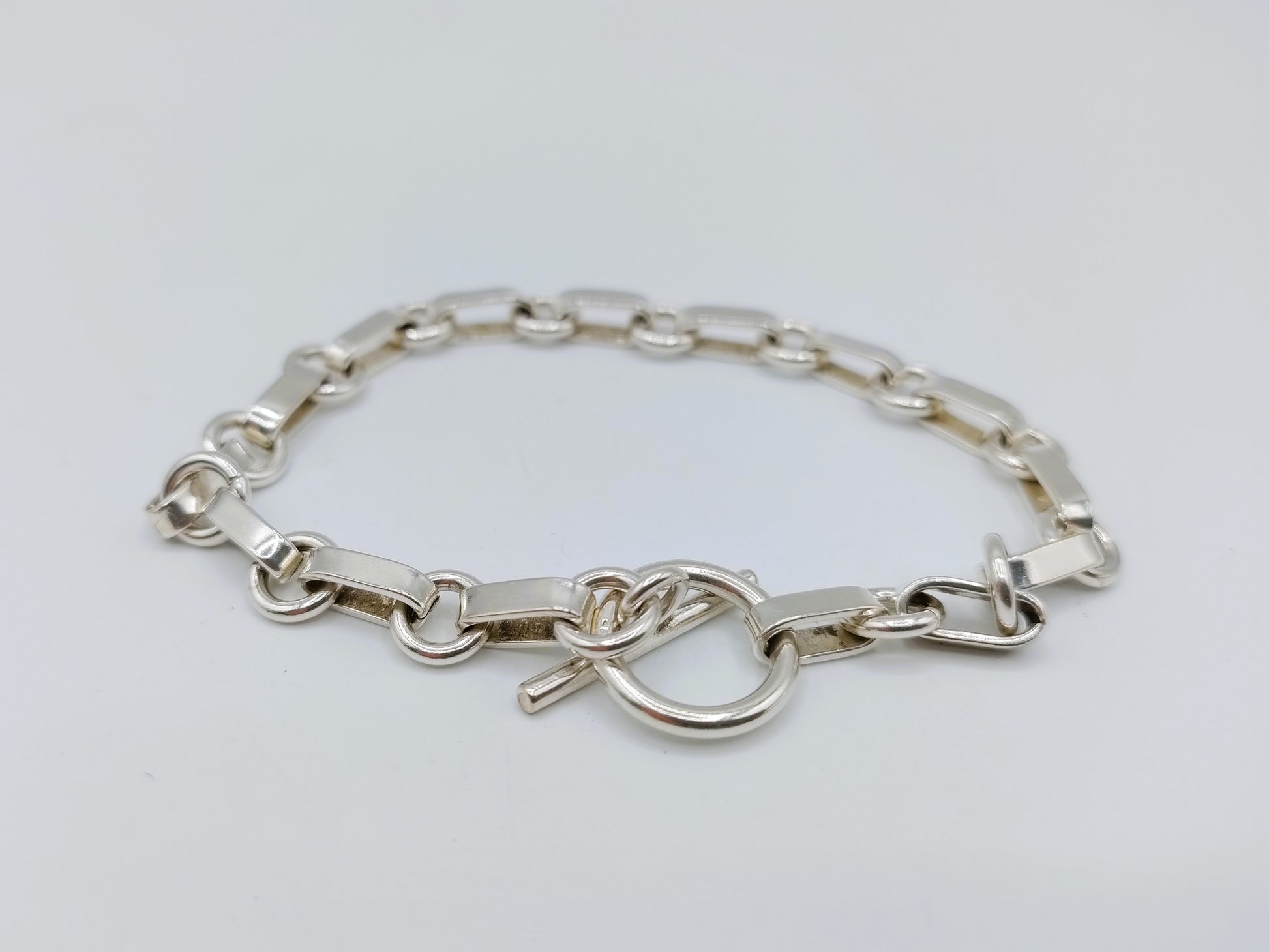 Zilveren schakelarmband met kapittelsluiting, 19 cm.
