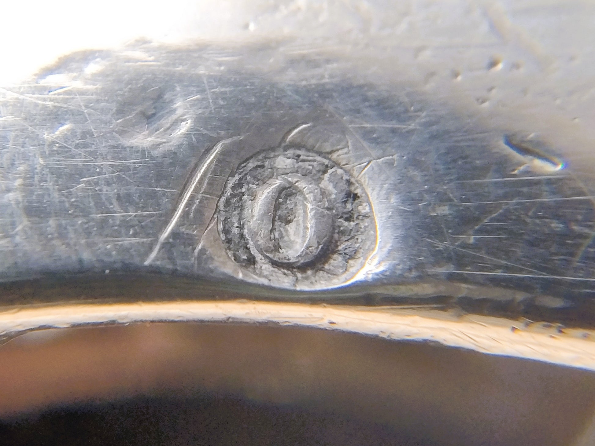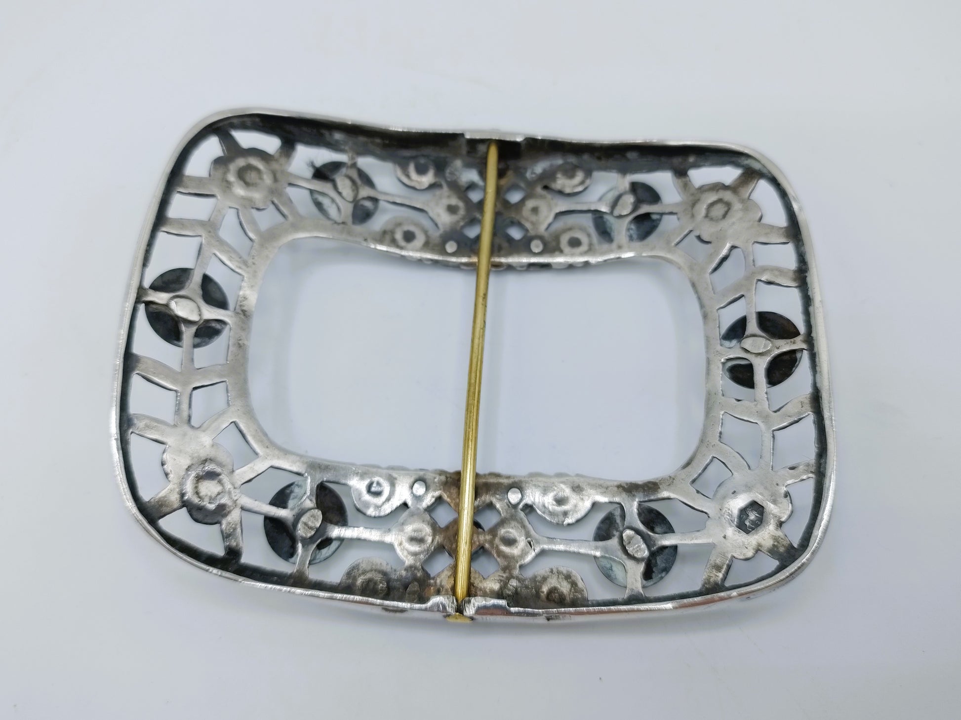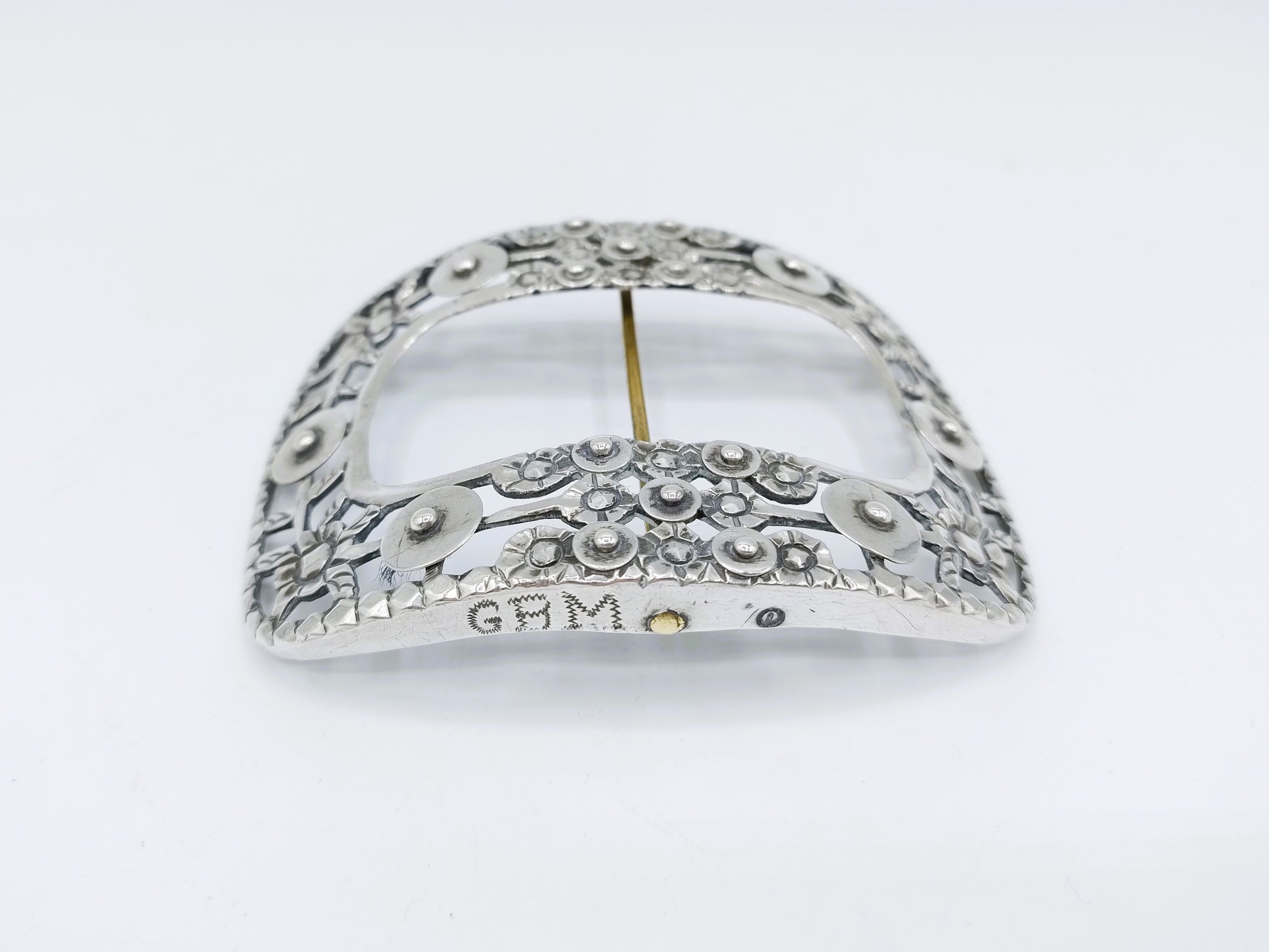 De gesp is gekeurd met het tweede gehaltekeur, minervakopje G voor Zwolle, jaarletter O voor 1848 en meesterteken HD31.