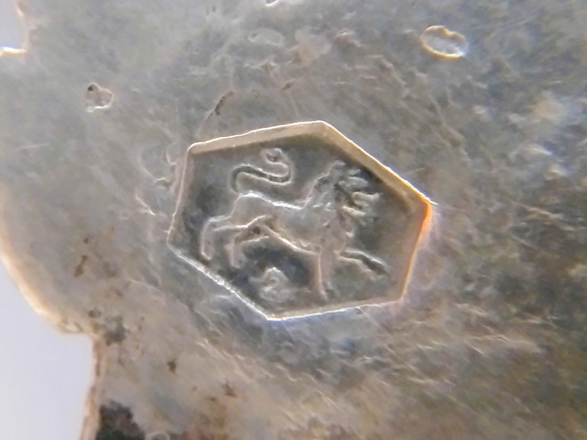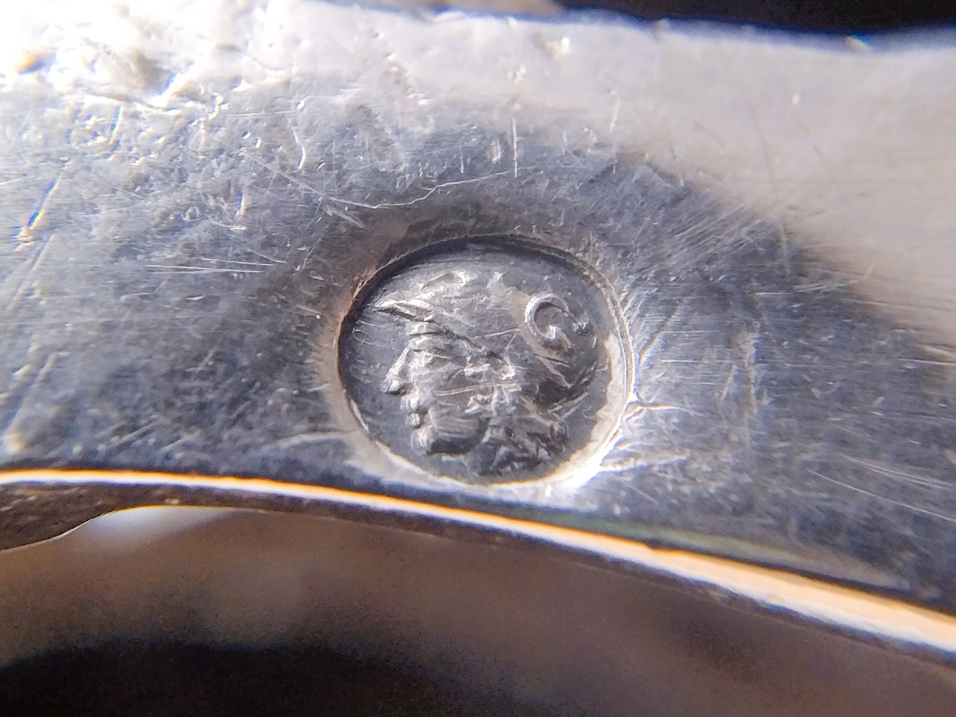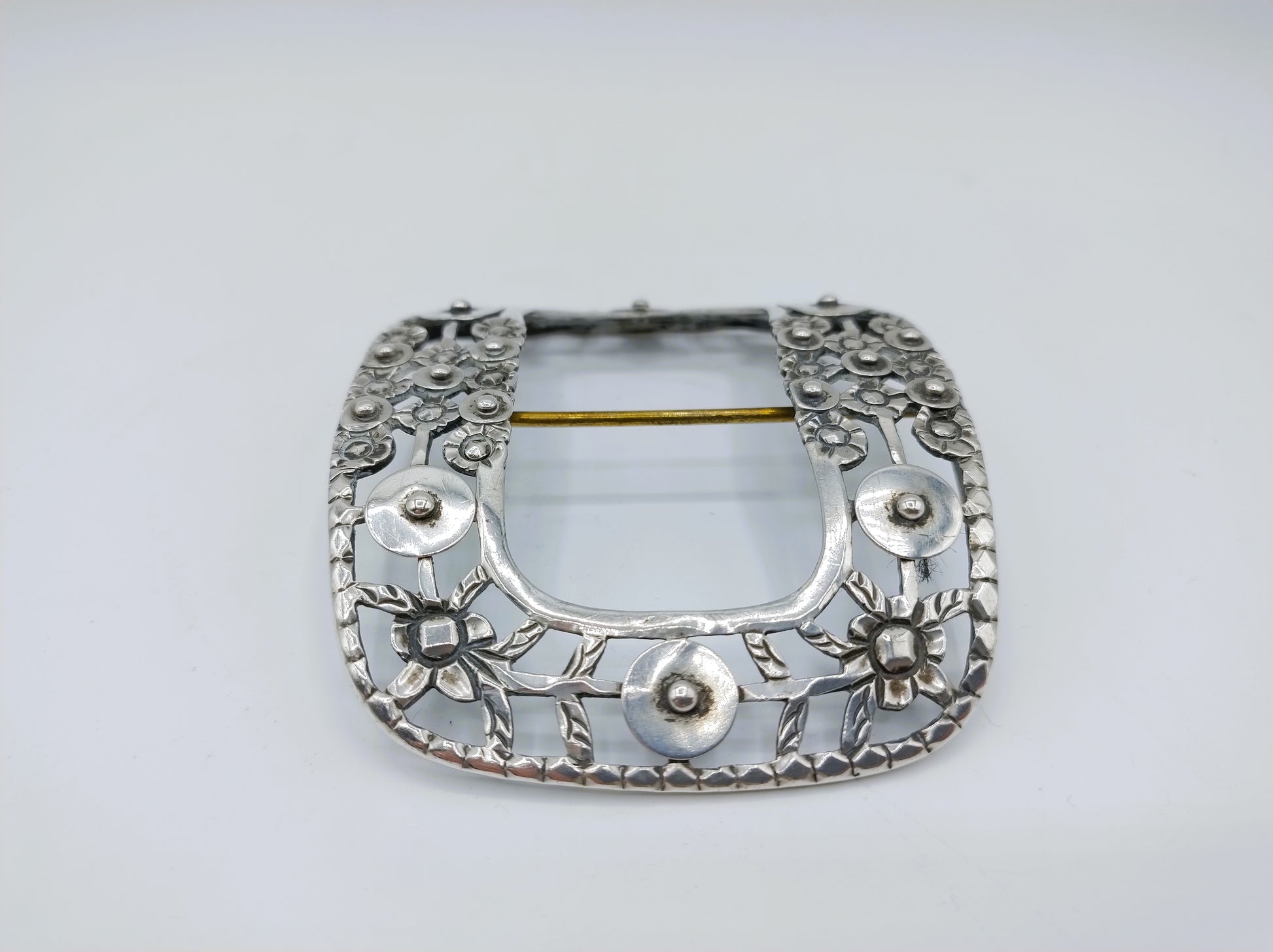 De gesp is gekeurd met het tweede gehaltekeur, minervakopje G voor Zwolle, jaarletter O voor 1848 en meesterteken HD31.