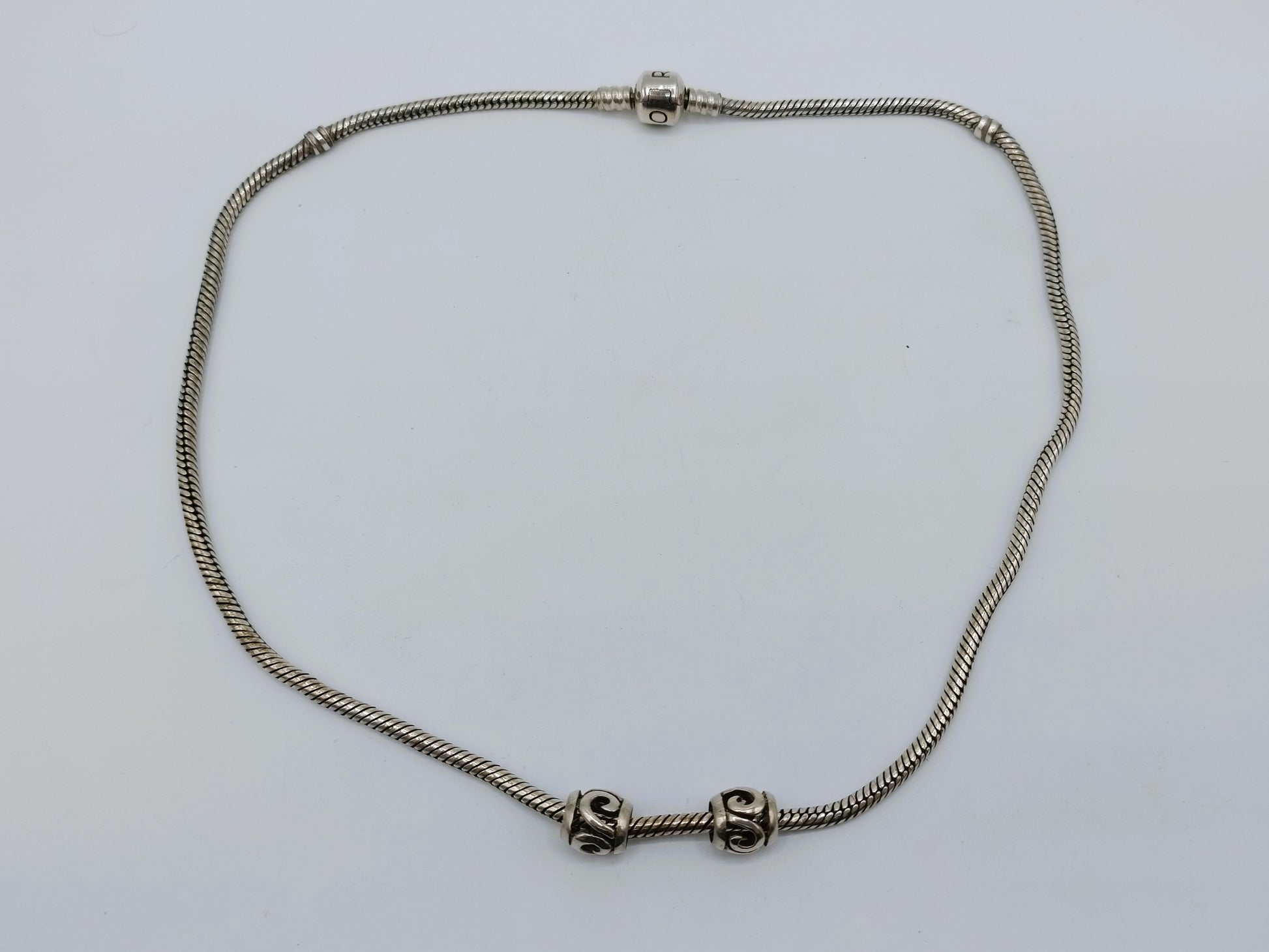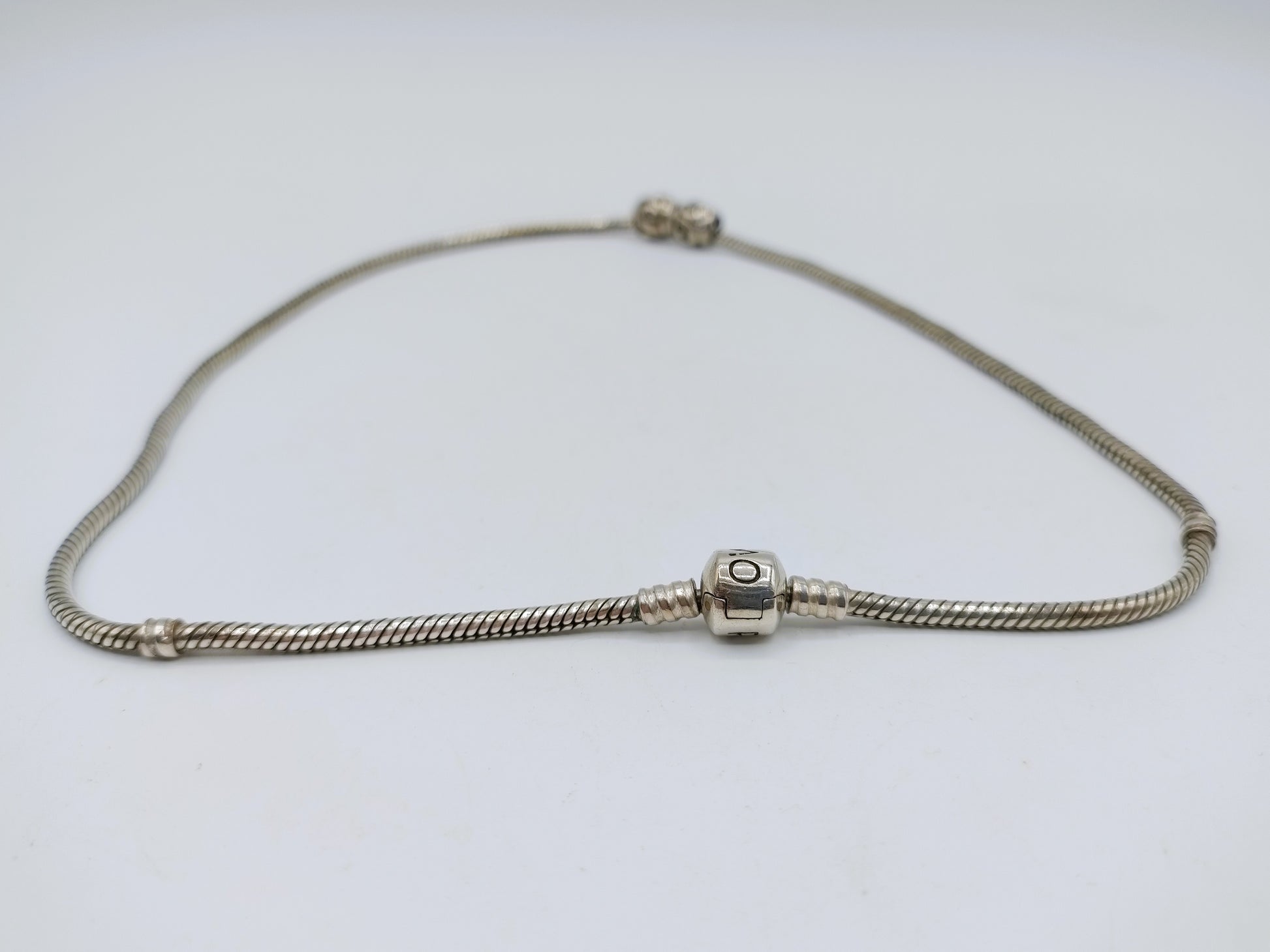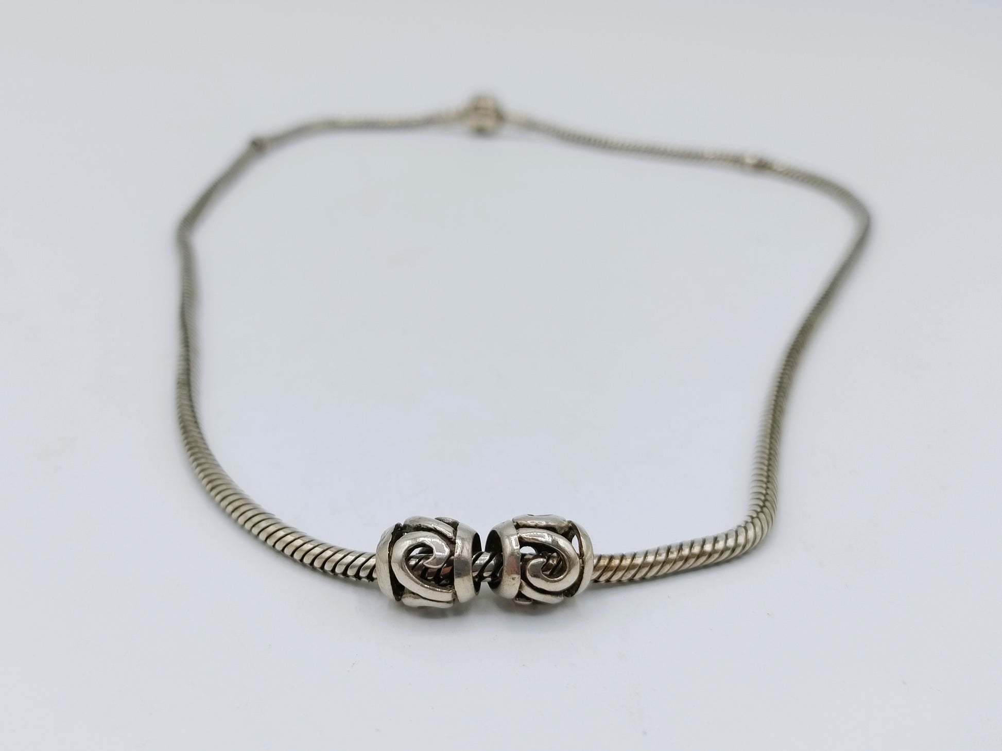 Zilveren slangenketting met hanger, Tedora, 45,5 cm.