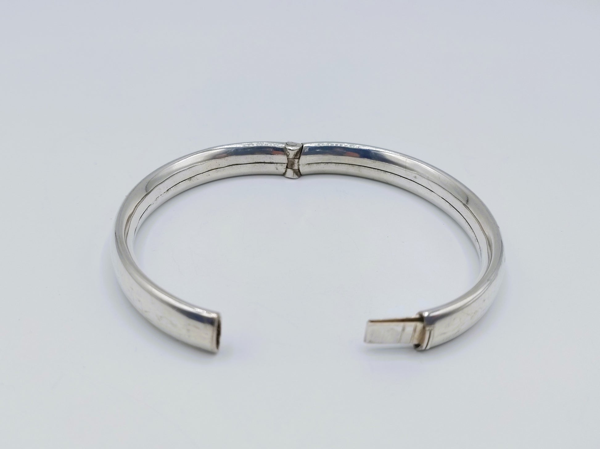 Zilveren slavenarmband met een binnen afmeting van: 5,5 x 6,5 cm.