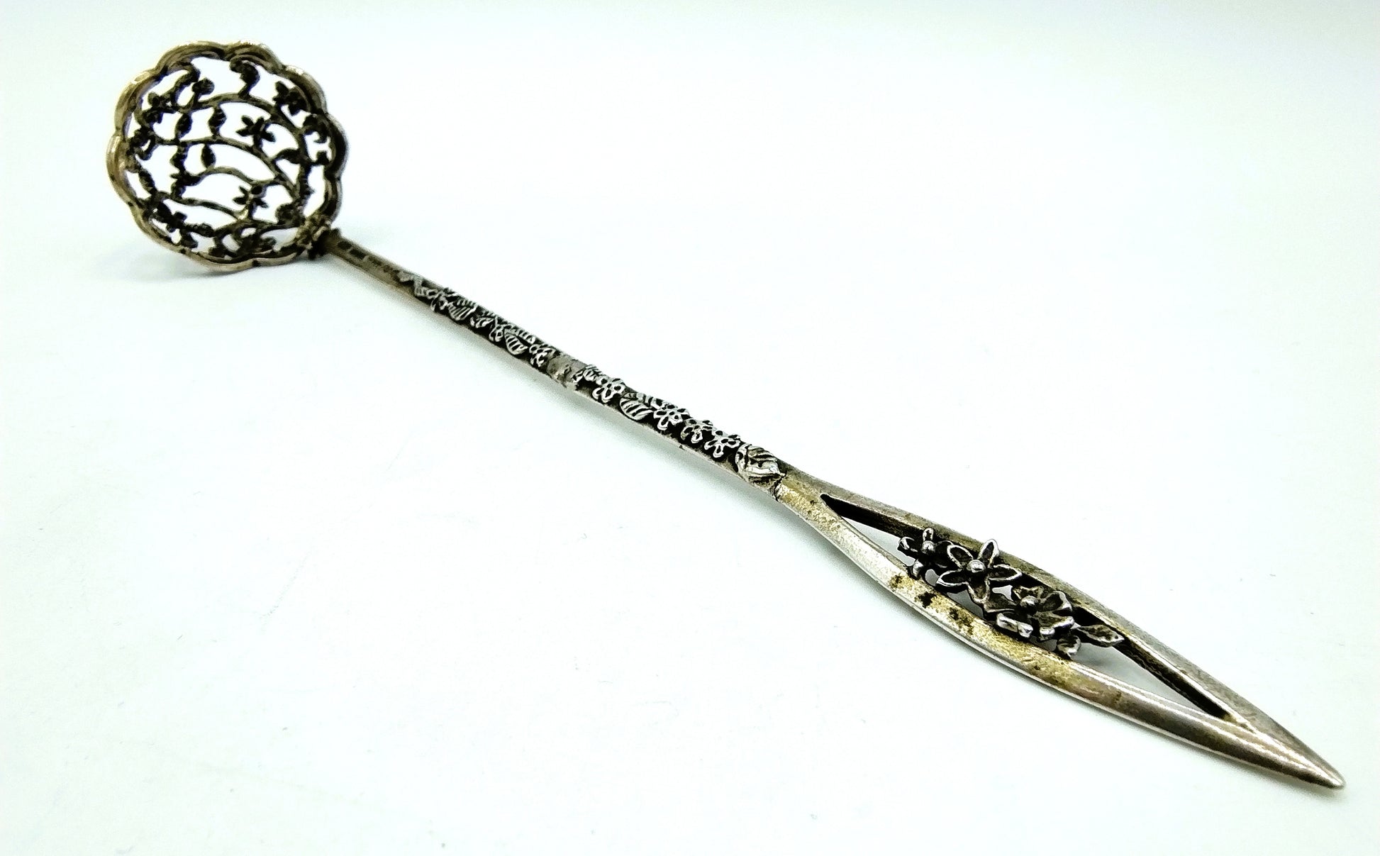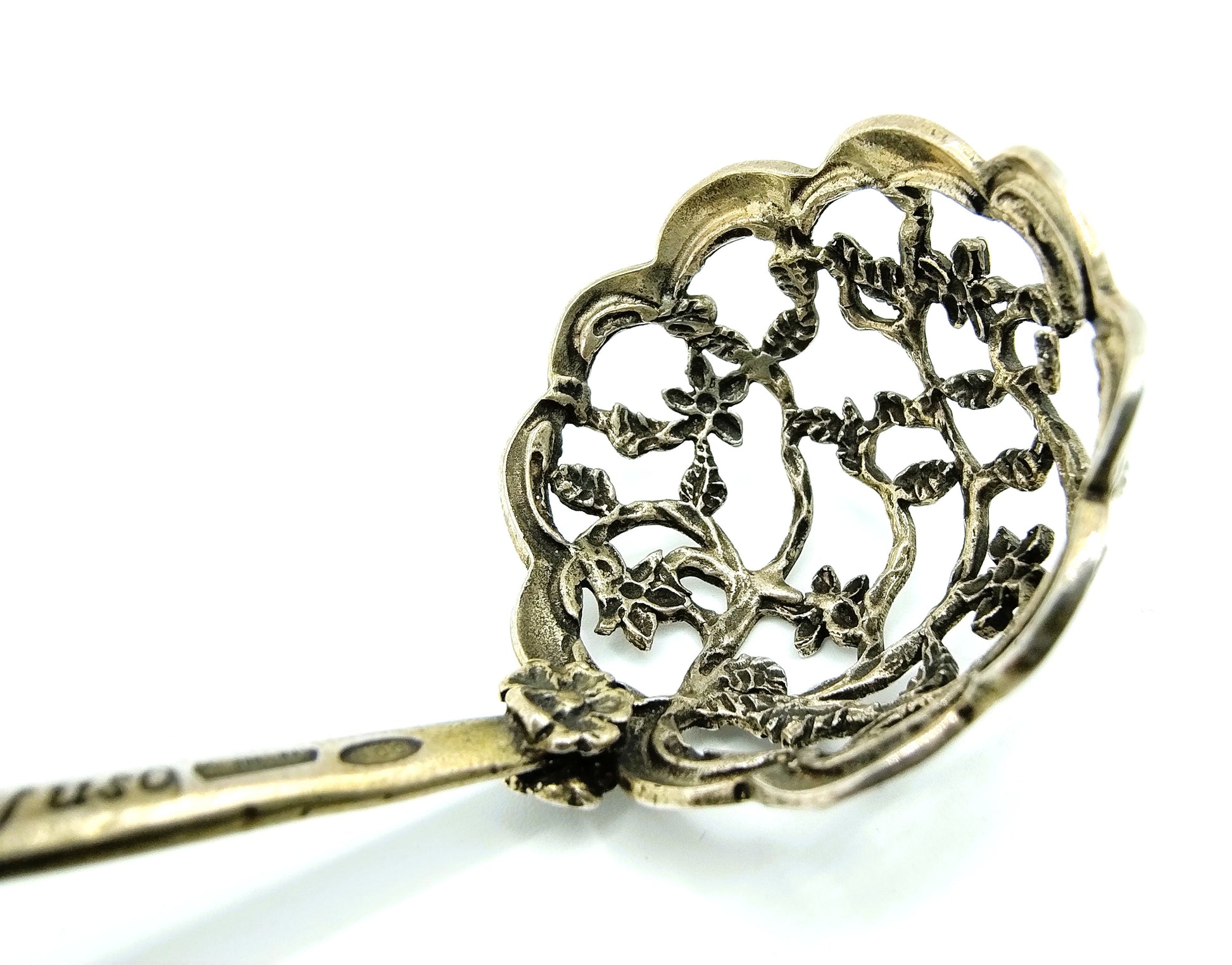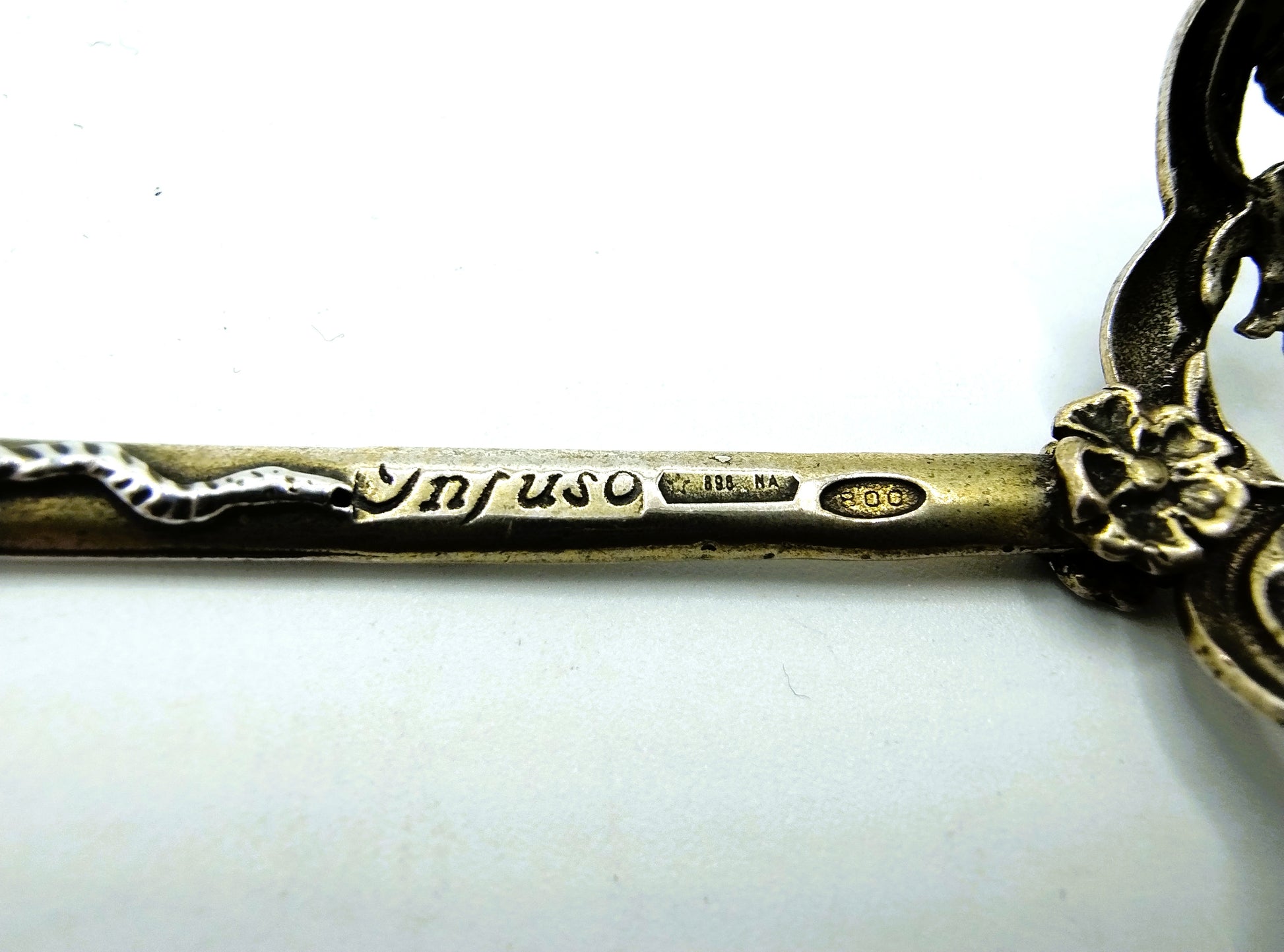 De lepel is gekeurd met 800 voor 3e gehalte zilver, Infuso en 898 NA als meesterkeur.