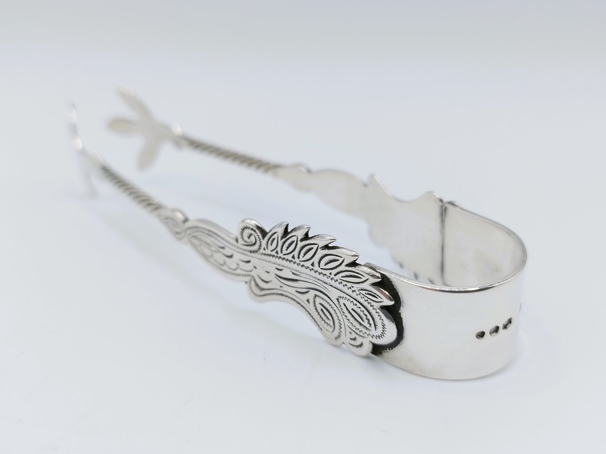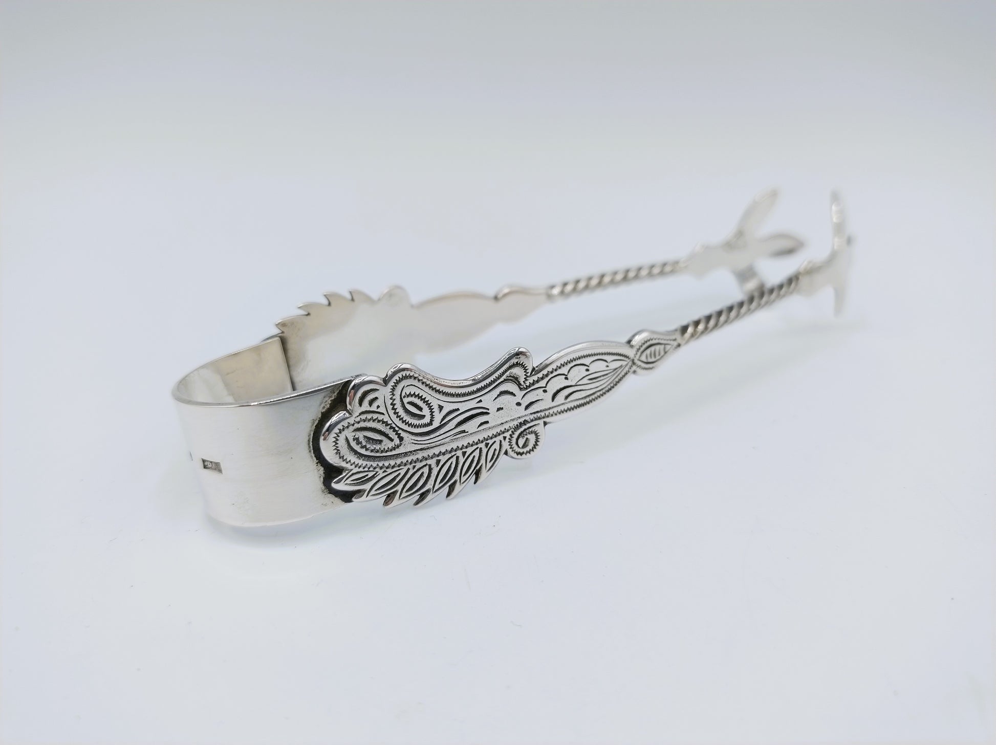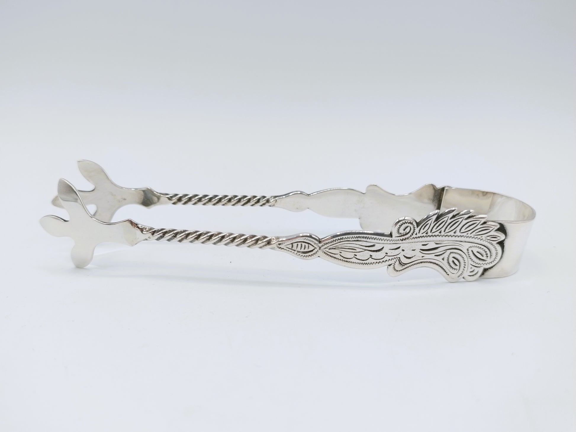 Zilveren suikerklontjestang gemaakt door de fa. J.H. van der Meulen uit Joure.