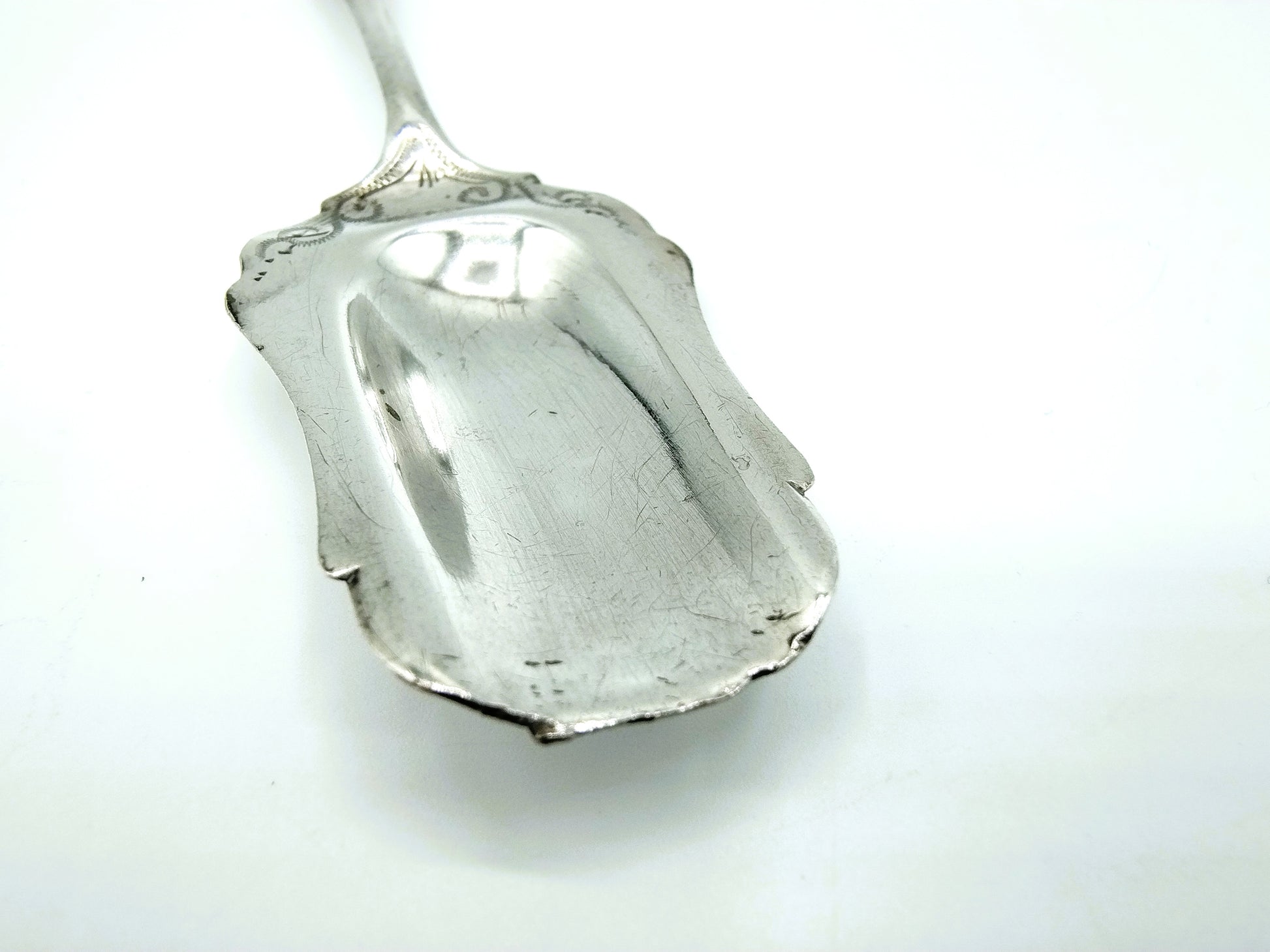 Zilveren suikerlepel gemaakt door de Gebroeders Huisman uit Schoonhoven. Zij waren werkzaam van 1926 tot 1934