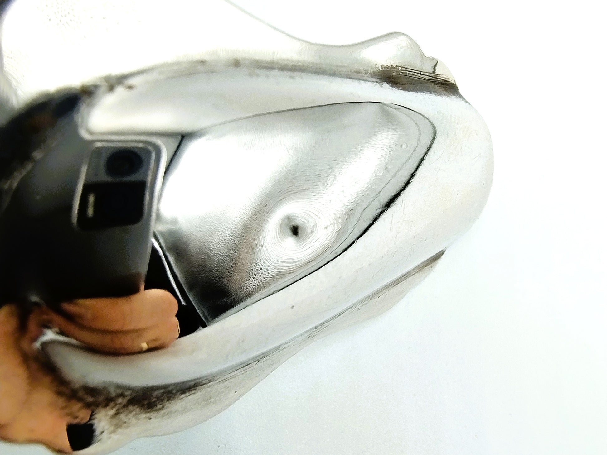 Aan de achterkant van de bak zit een klein deukje.