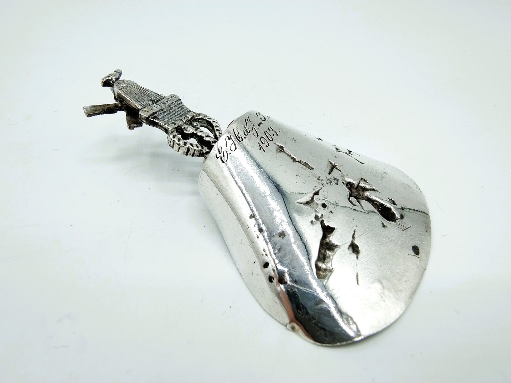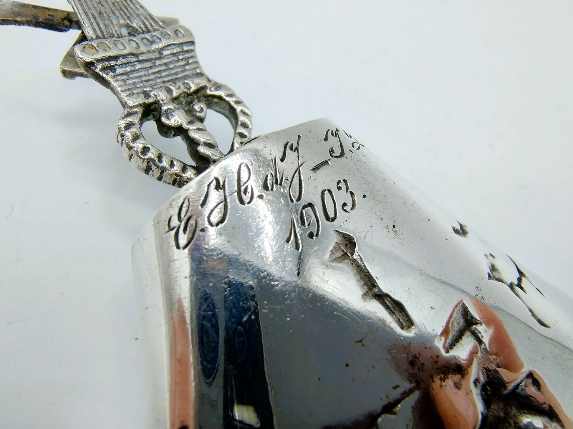 Aan de achterkant van de lepel is gegraveerd: EHdJ - JD 1903.