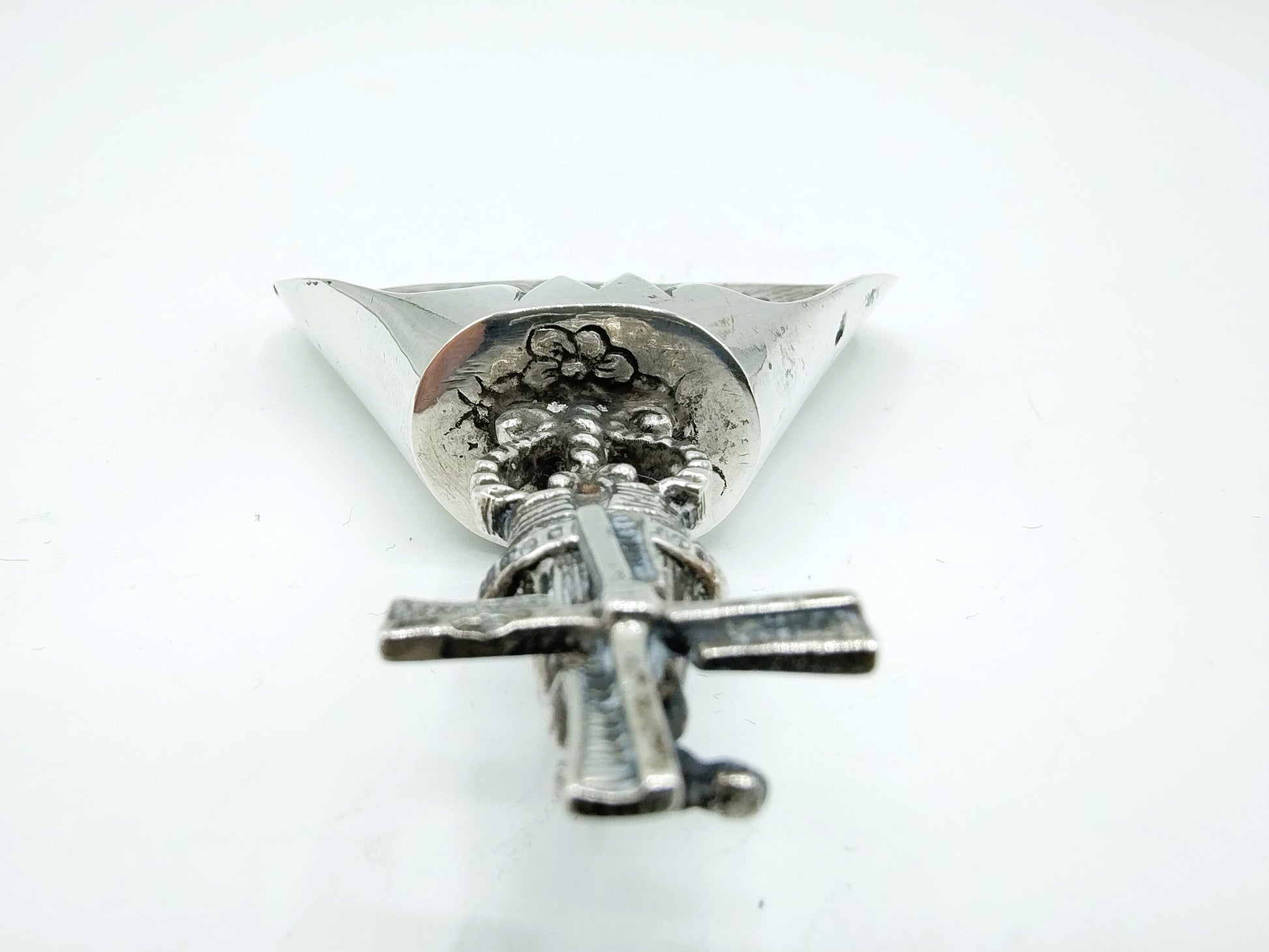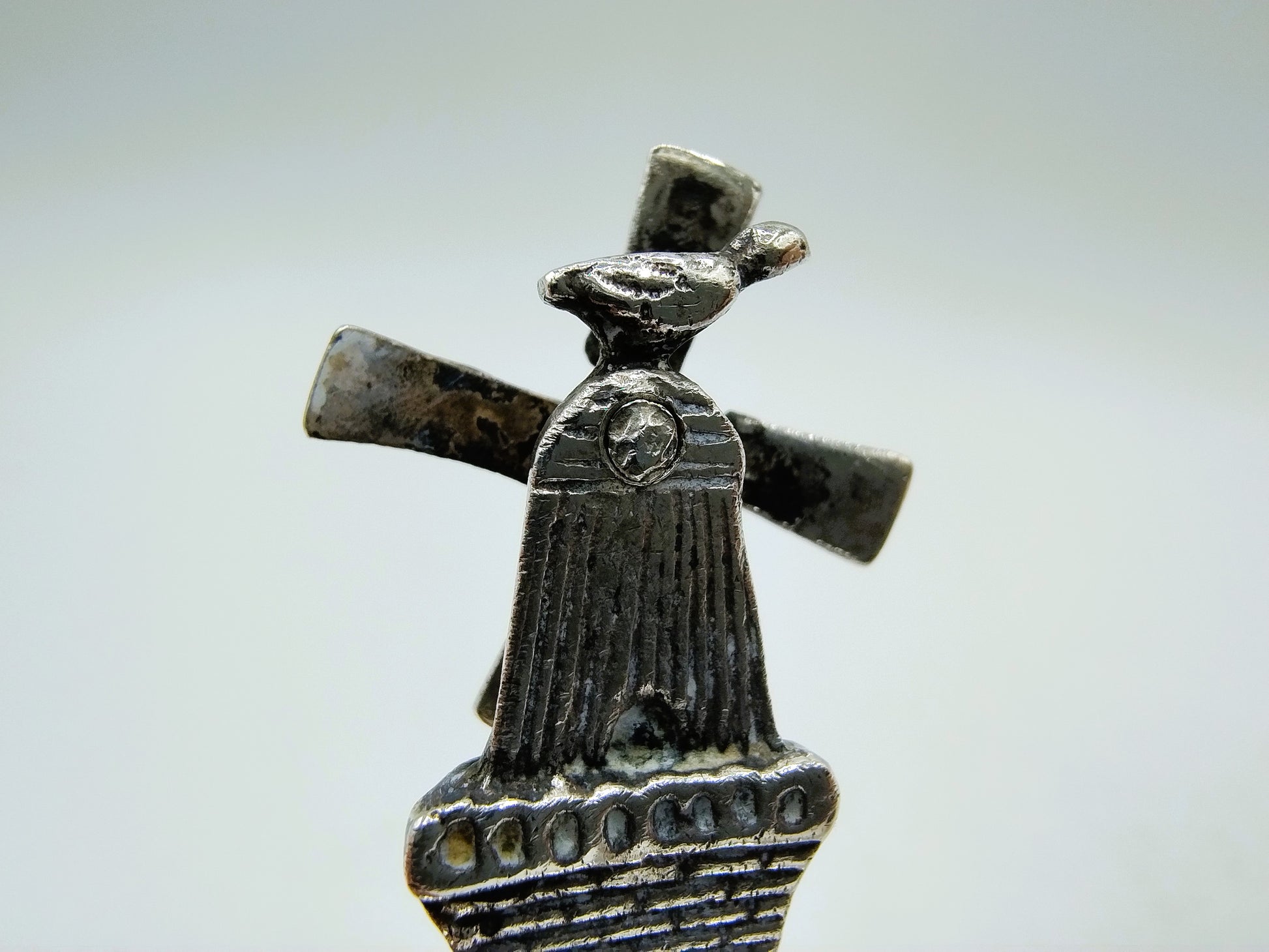 Als bekroning van de lepel is een molen met echt draaiende wieken geplaatst. De wieken zijn ook gekeurd met het zwaardje.
