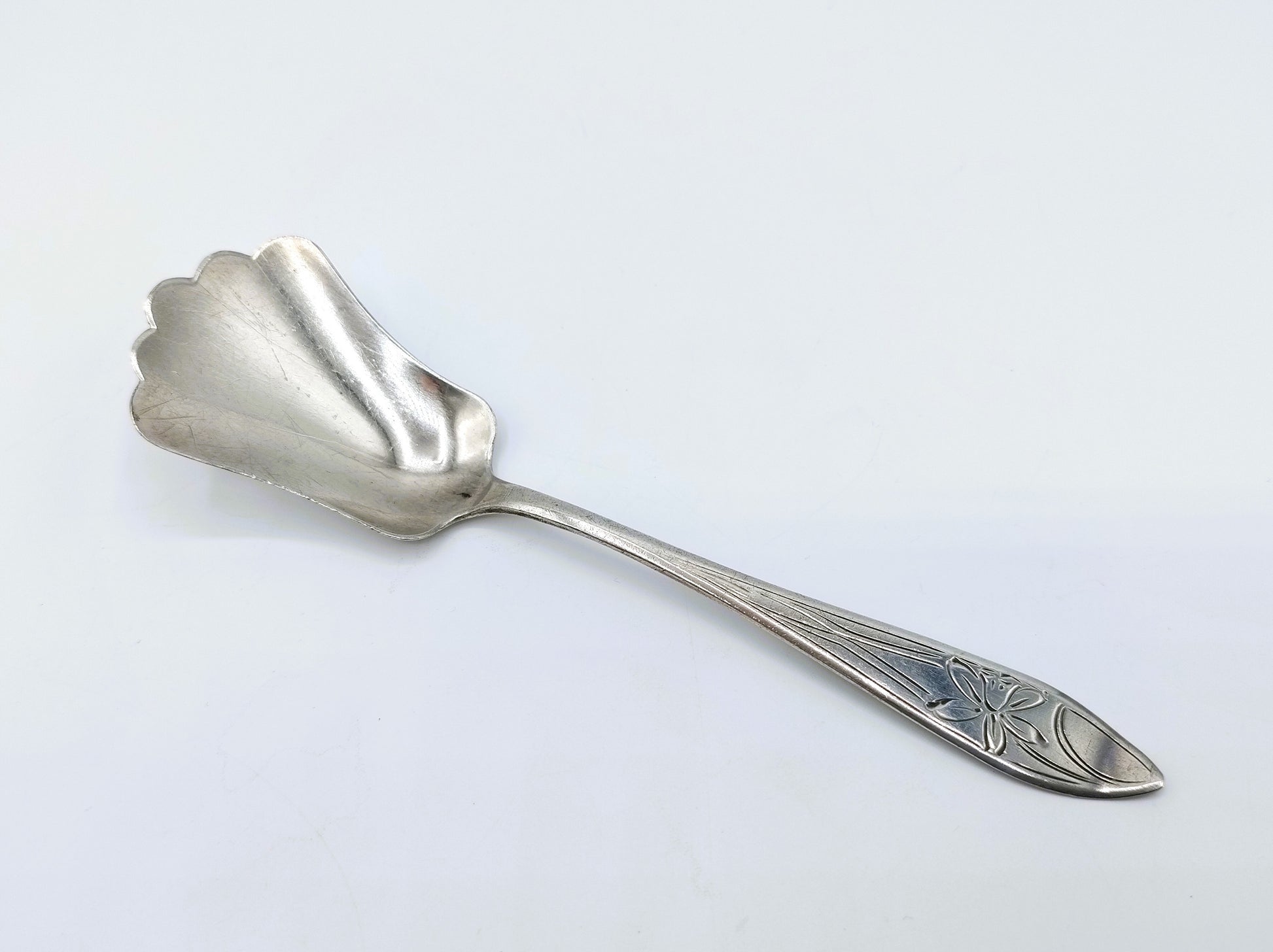 Zilveren suikerschepje afkomstig uit Schoonhoven.