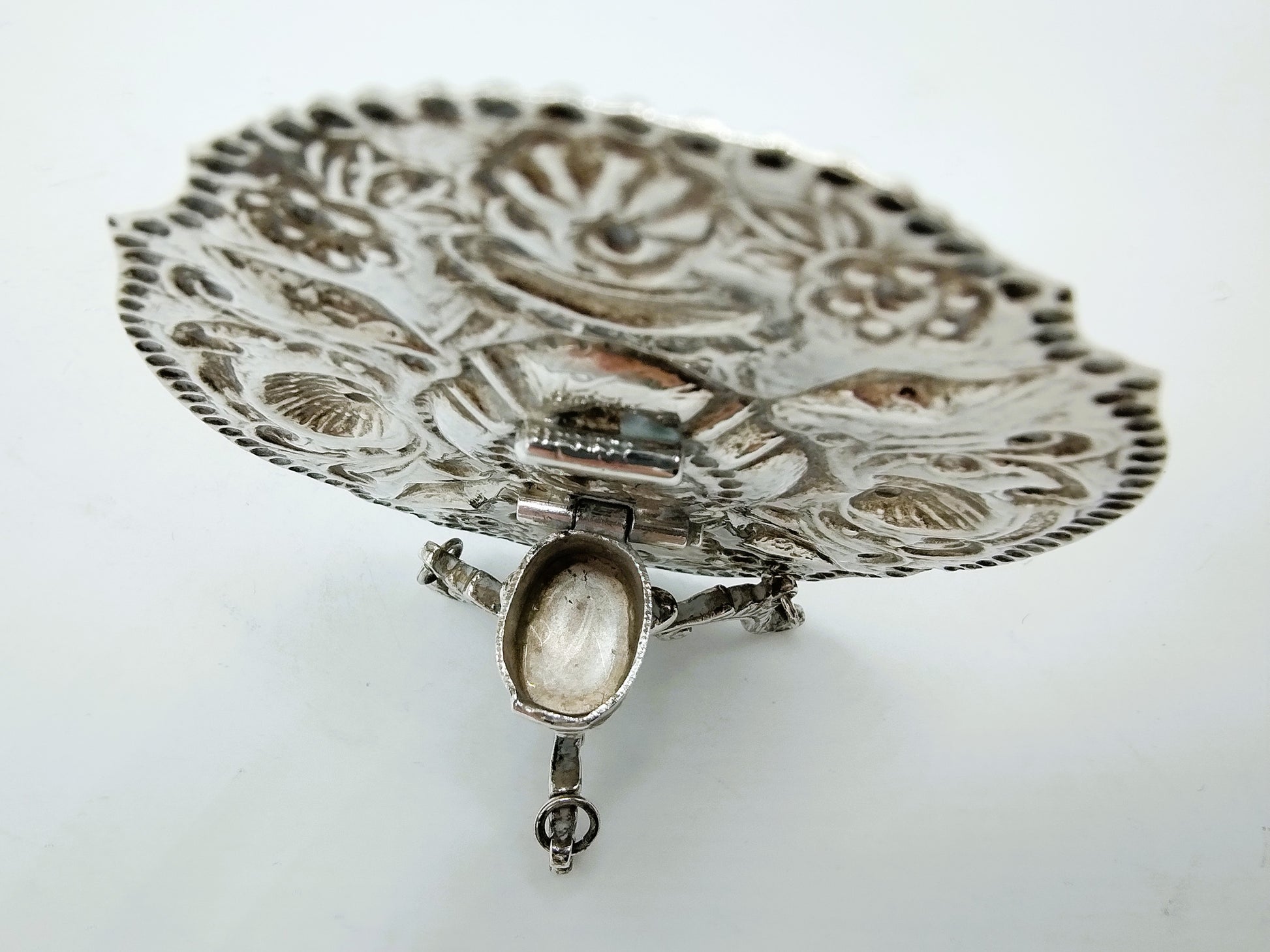 Het tafeltje is voorzien van krulmotieven met op de binnenkant een vogel. Het tafelblad is scharniert op een holle cylinder, zie hiervoor ook de foto's. Onder de cylinder zijn gekrulde pootjes met c voluten bevestigd.