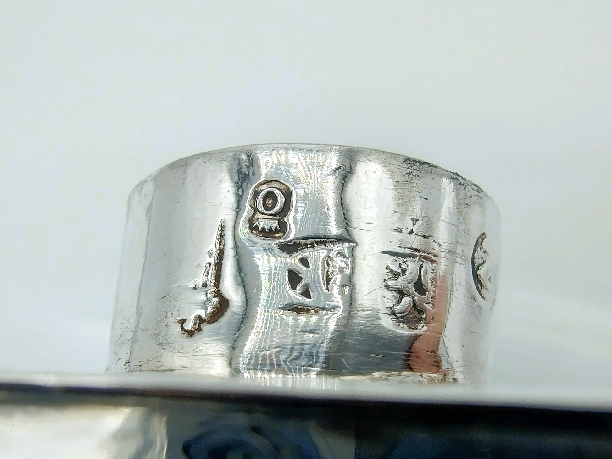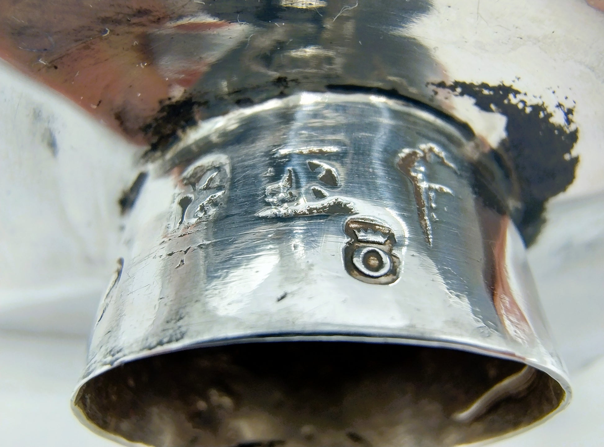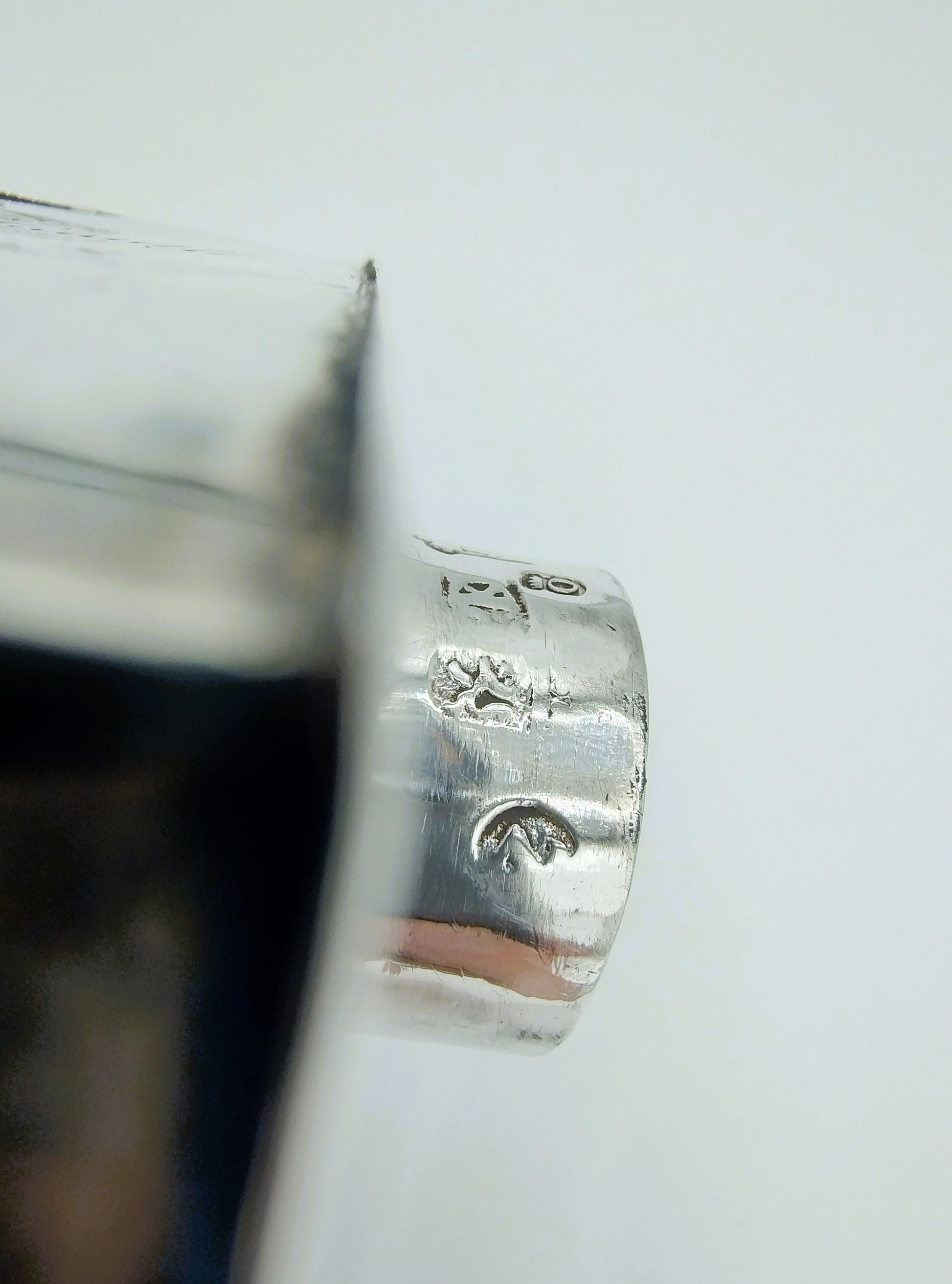 Voorzien van de volgende keuren: Stadskeur van Amsterdam, Leeuw klimmend onder kroon, provincie Holland standaardmerk zilver 934/1000. Jaarletter N, gebaseerd op de vorm van het stadsmerk Amsterdam en de leeuw klimmend, voor 1747.