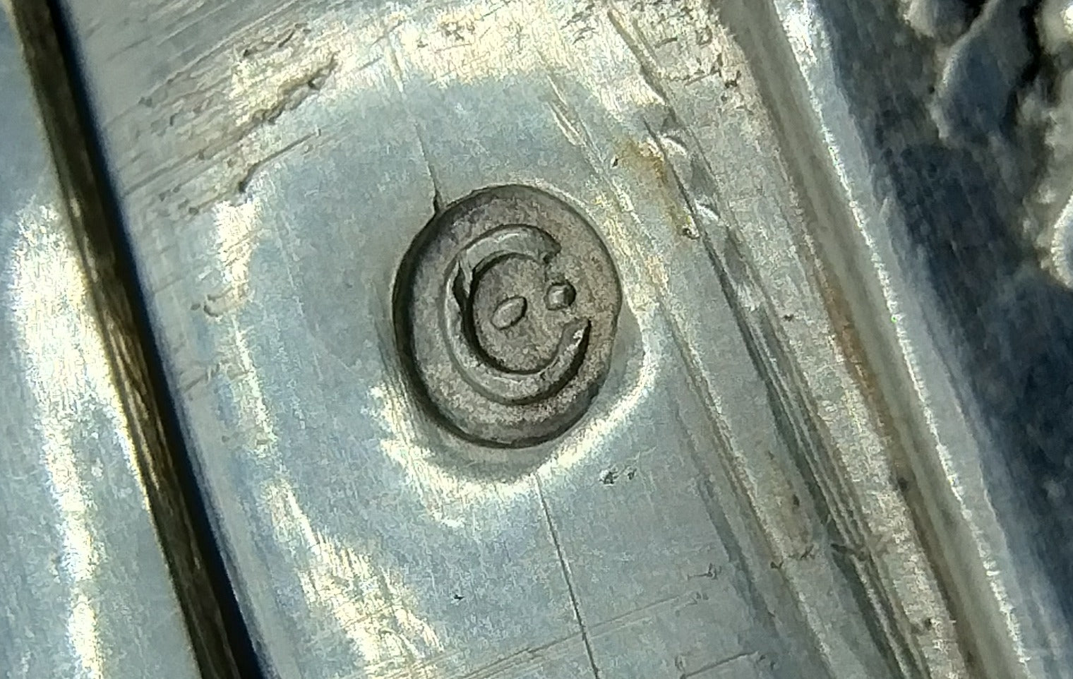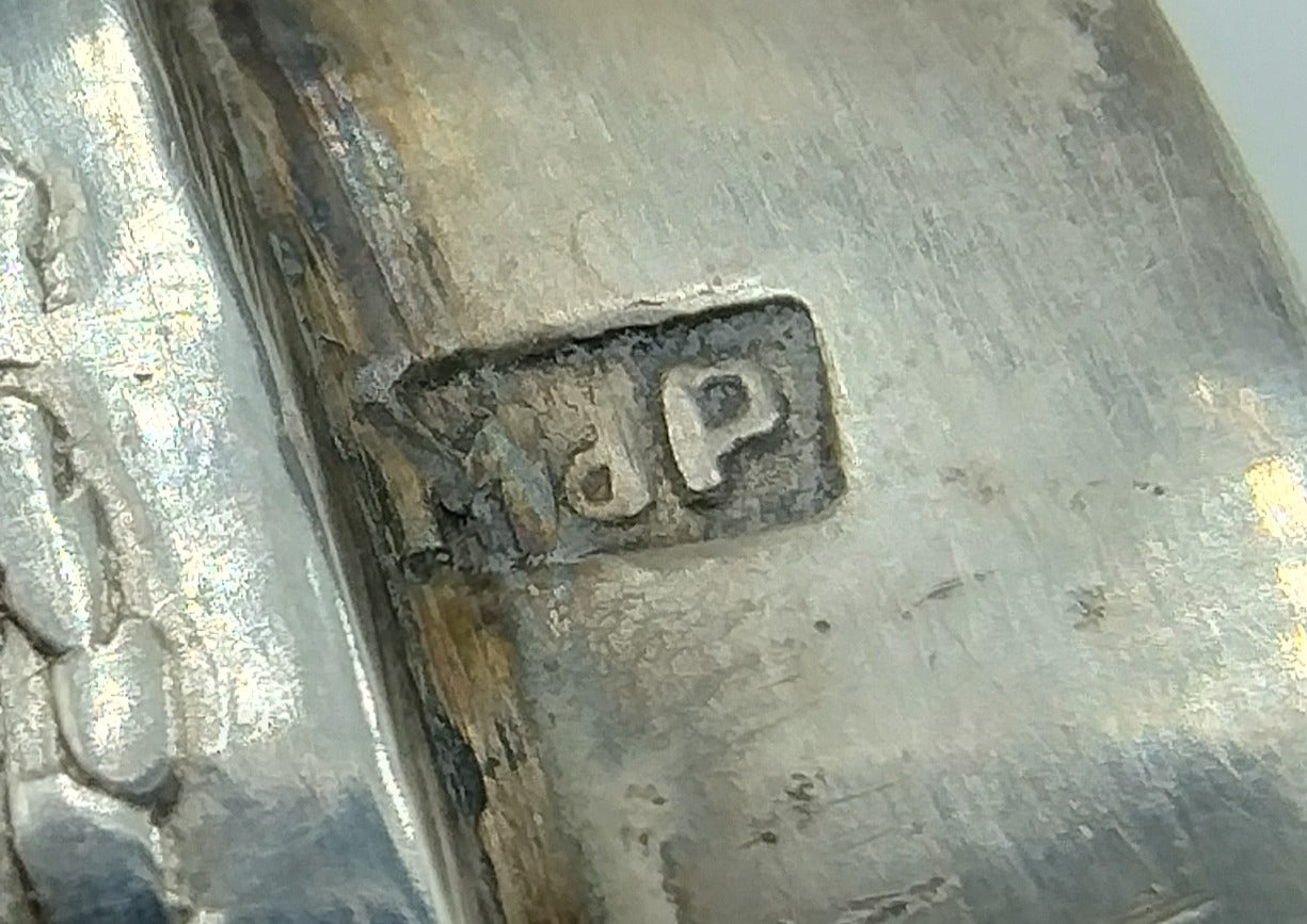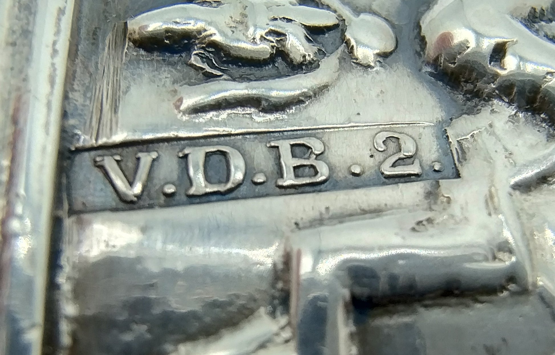 Het is gekeurd met het tweede gehaltekeur (met uitvoersleutel), minervakopje, jaarletter C voor 1913 en beide meesterkeuren MdP en V.D.B.2.
