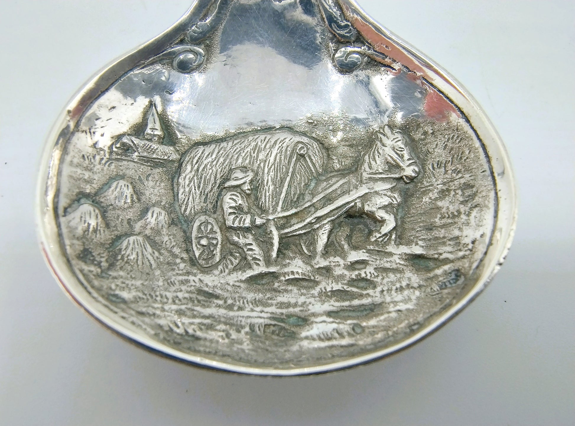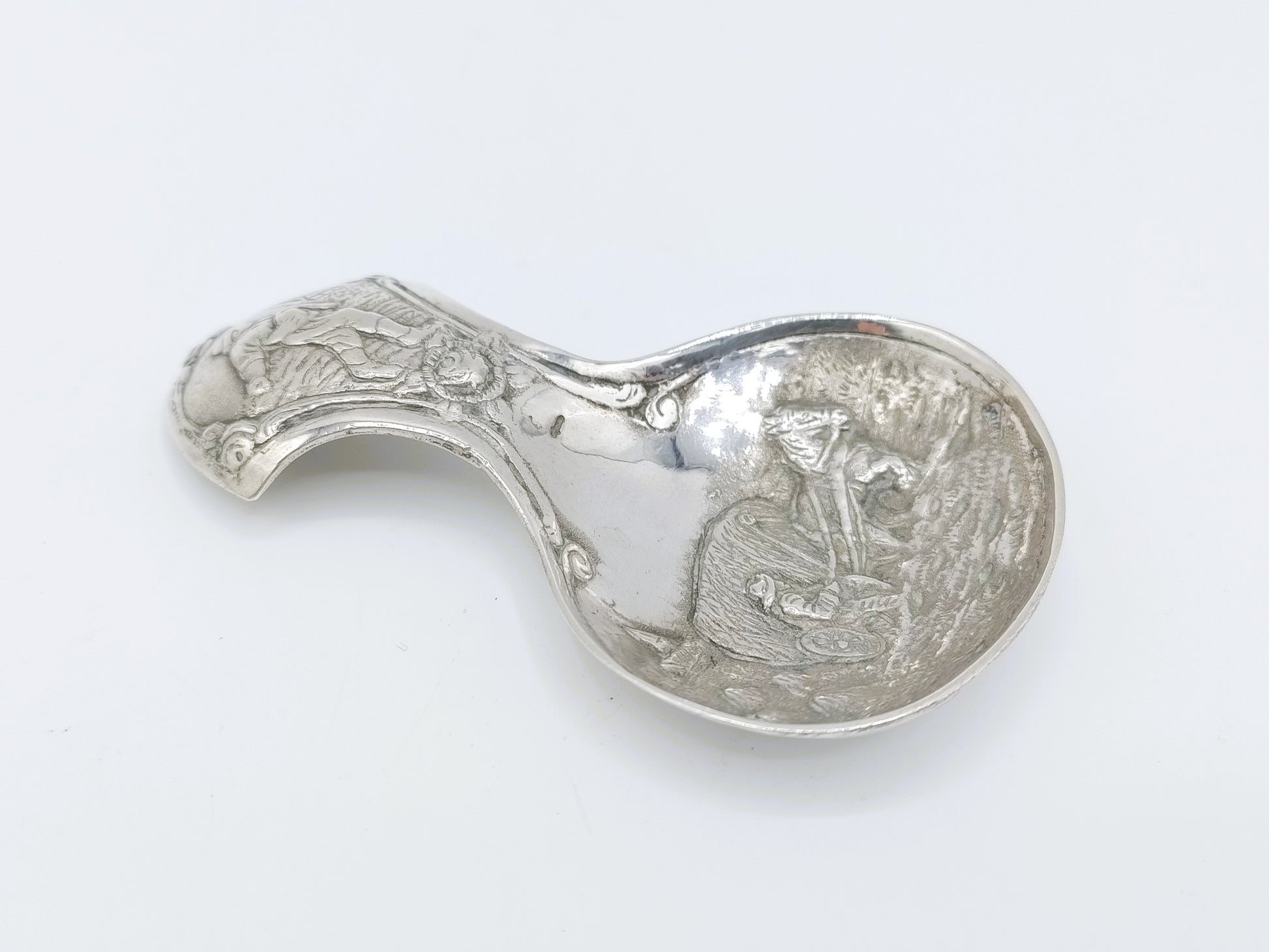 Zilveren theeduim met oud Hollandse voorstelling van een zaaiende en oogstende boer.