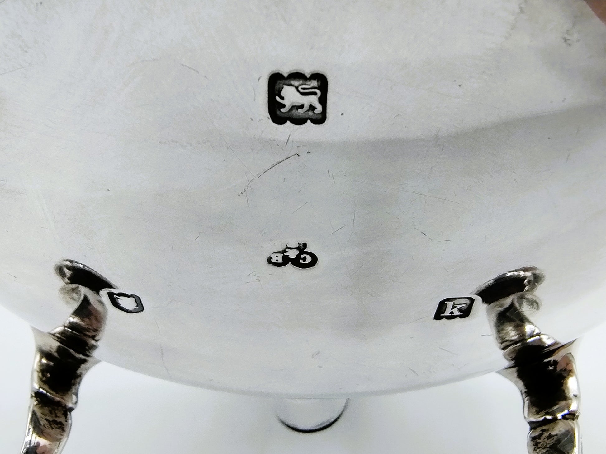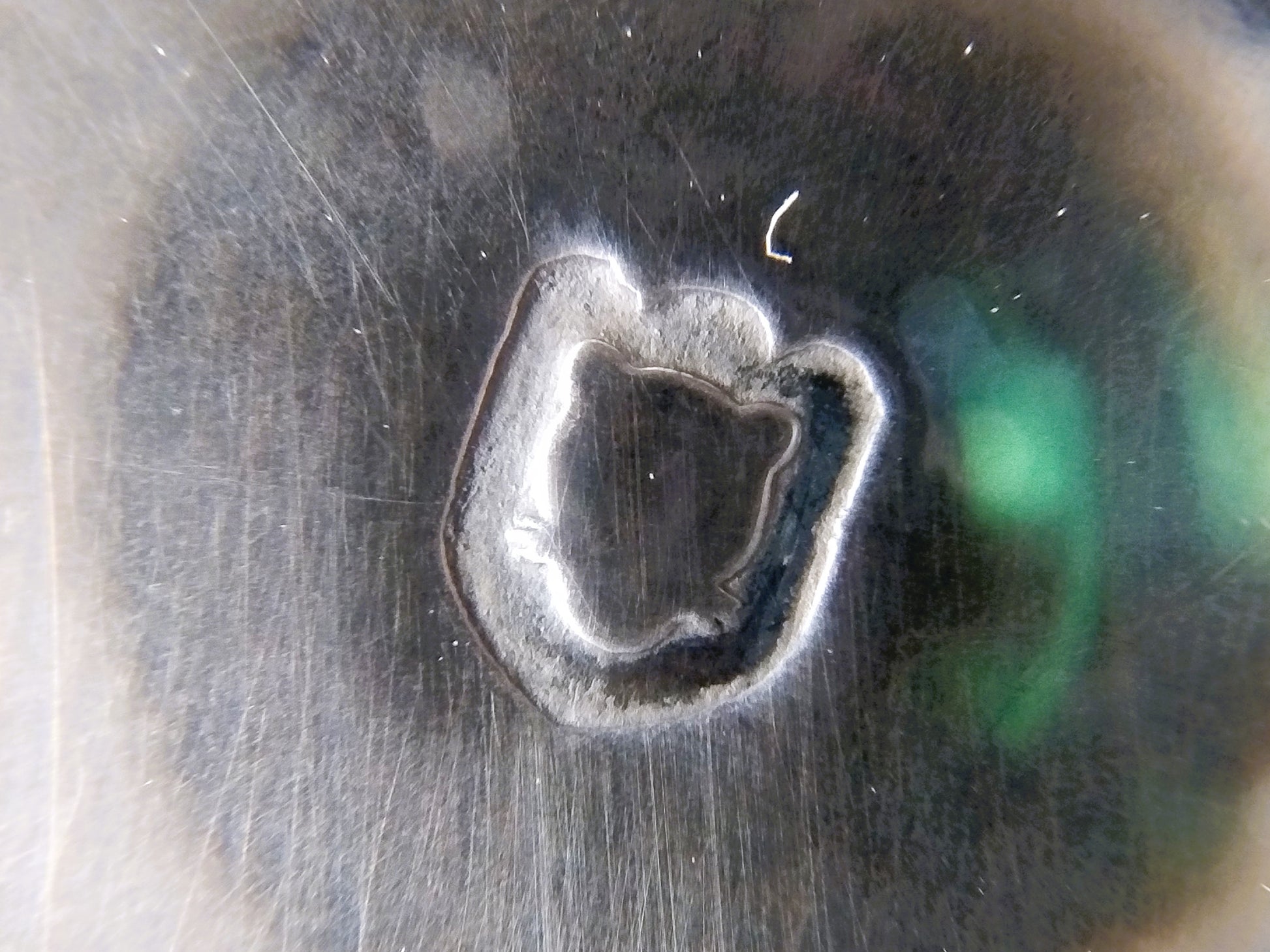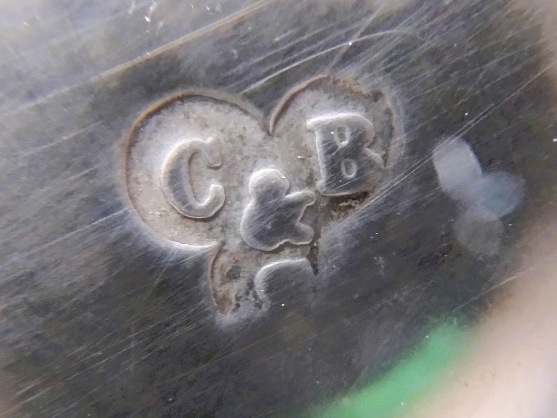 De theepot is gekeurd met het stadskeur van Londen, meesterteken CBS, 1e gehalte keur en jaarletter k voor 1905.