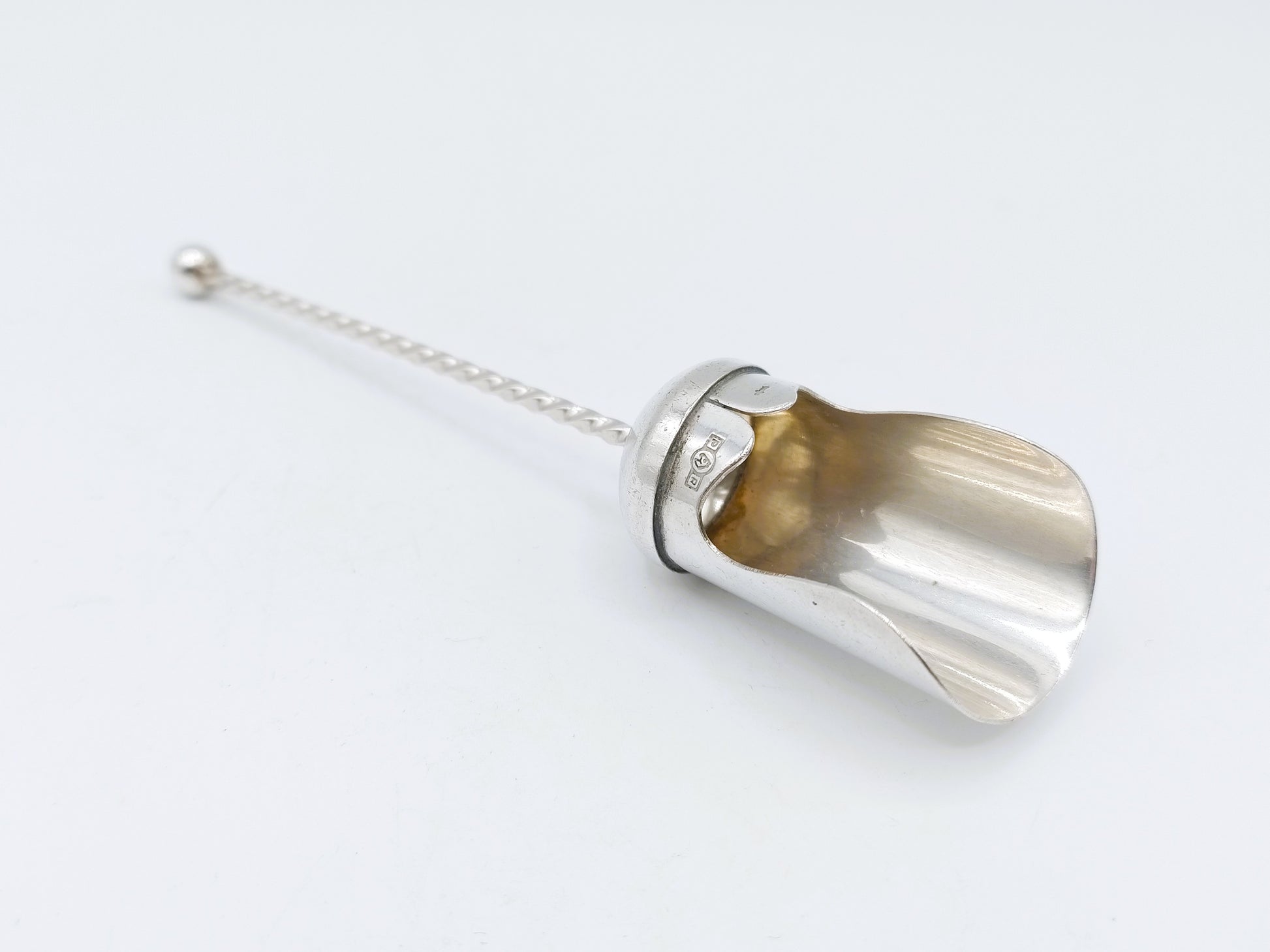 Zilveren theeschepje gemaakt door de zilversmid B. Drost Gz uit Rhenen. (Pako Metaalwarenfabriek) Datering ca. 1980.