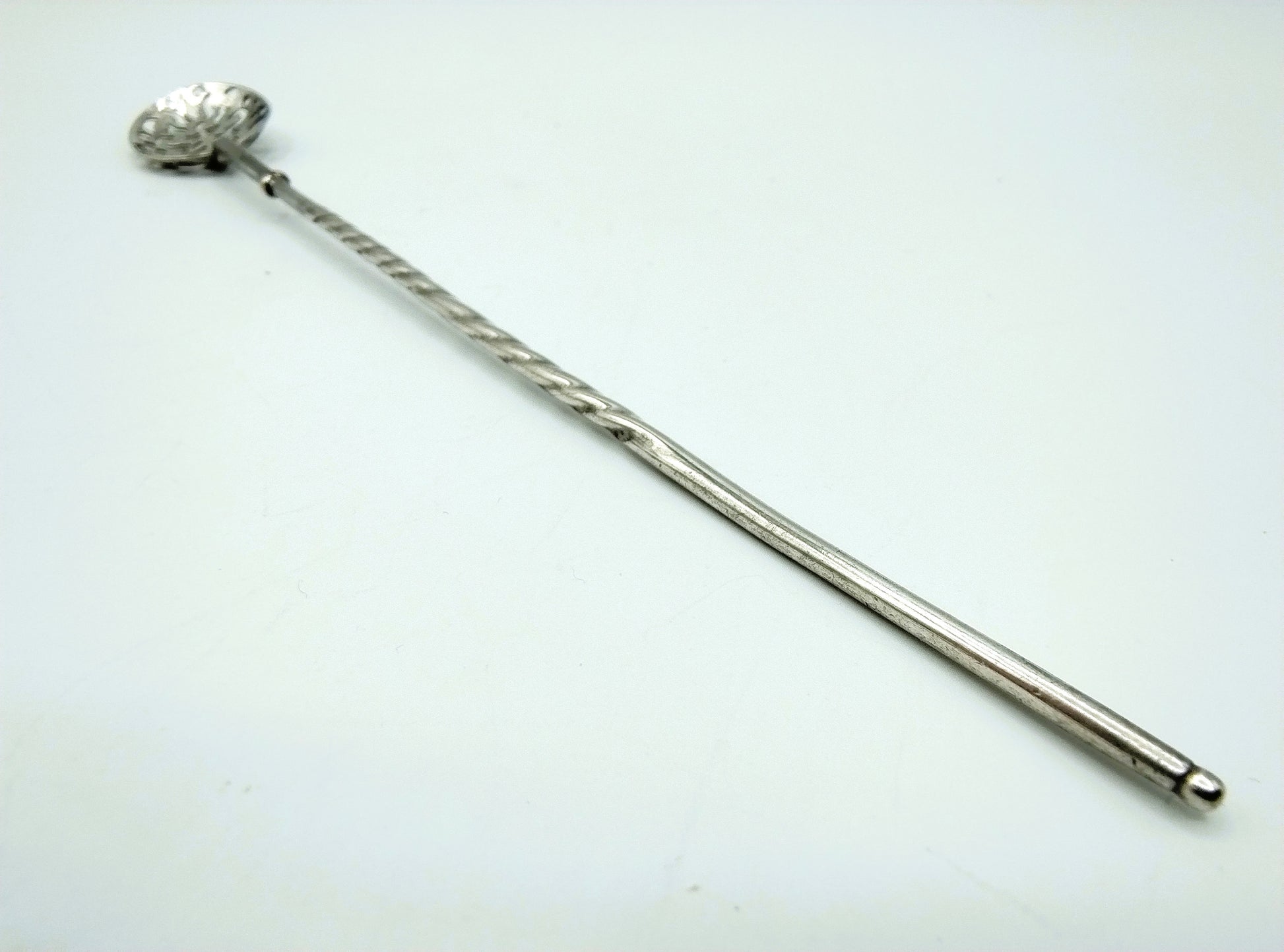 De bak is fraai uitgezaagd en de lepel is voorzien van een lange getorste steel. Hiermee kon een verstopte theetuit doorgeprikt worden.