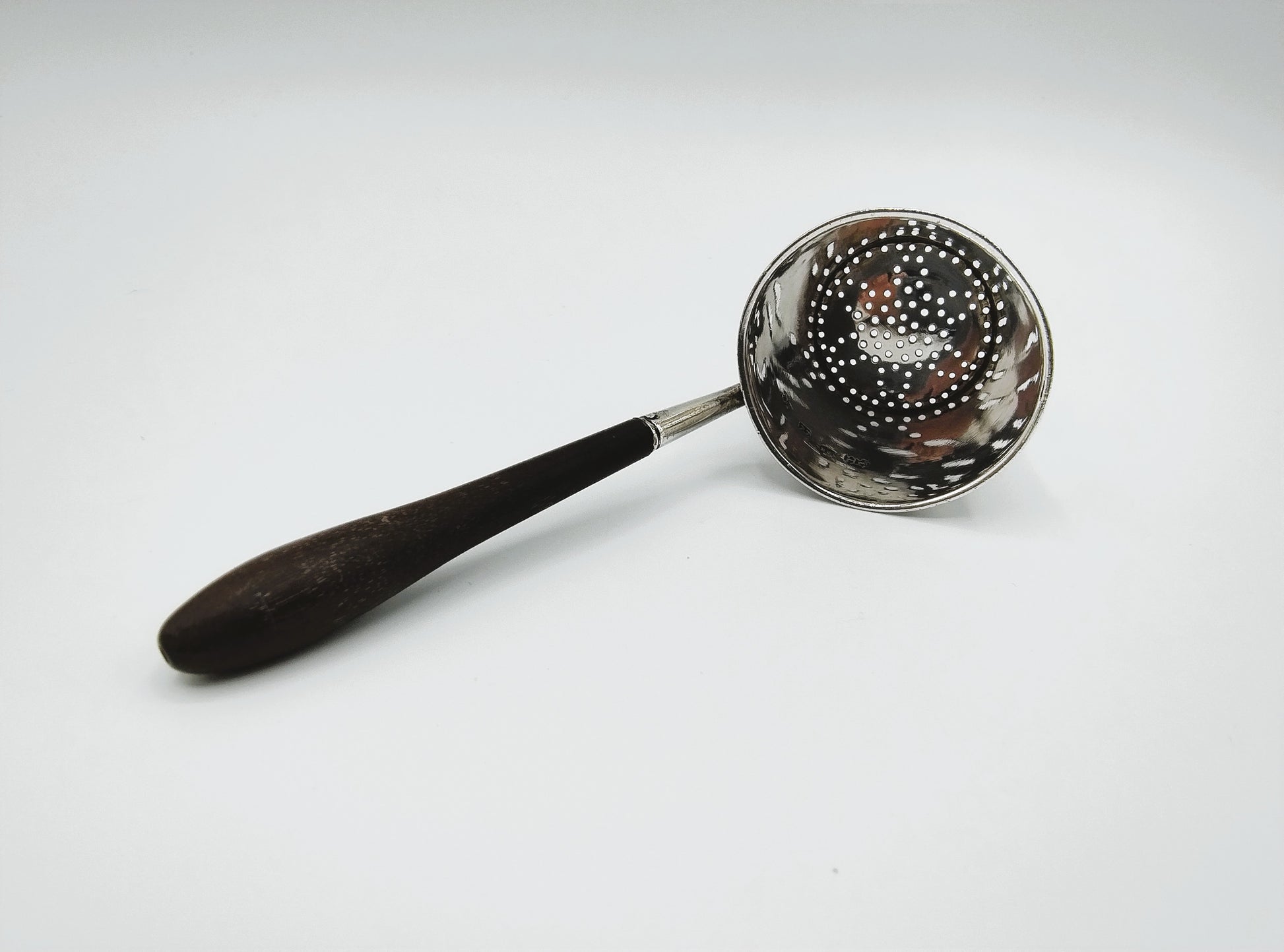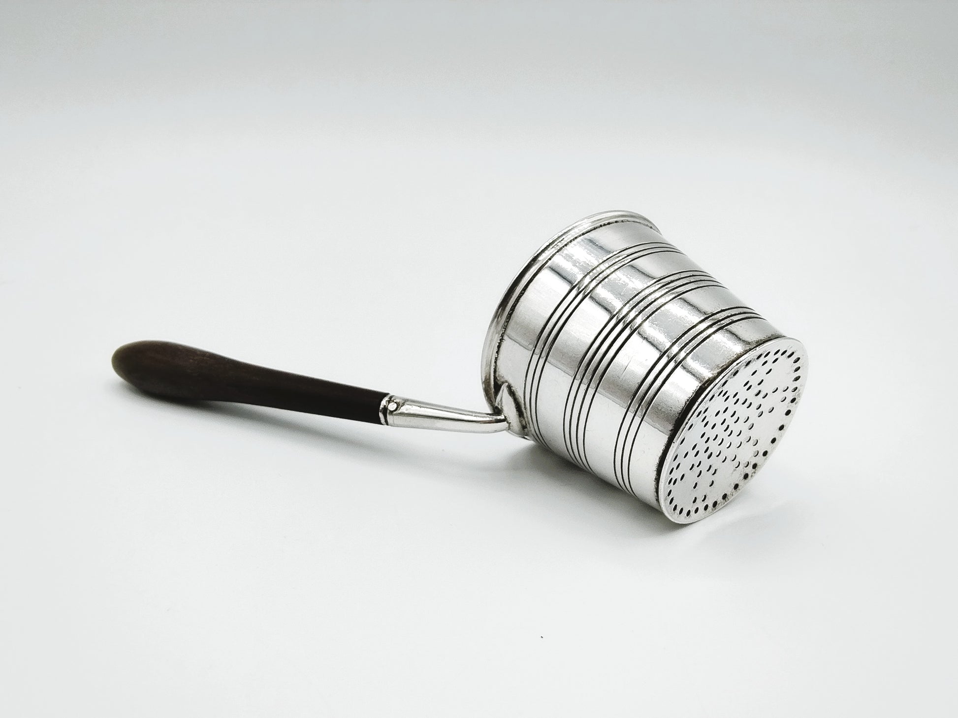Zilveren theezeefje met ebbenhouten steel, H. Heuvel, Amsterdam, 1808