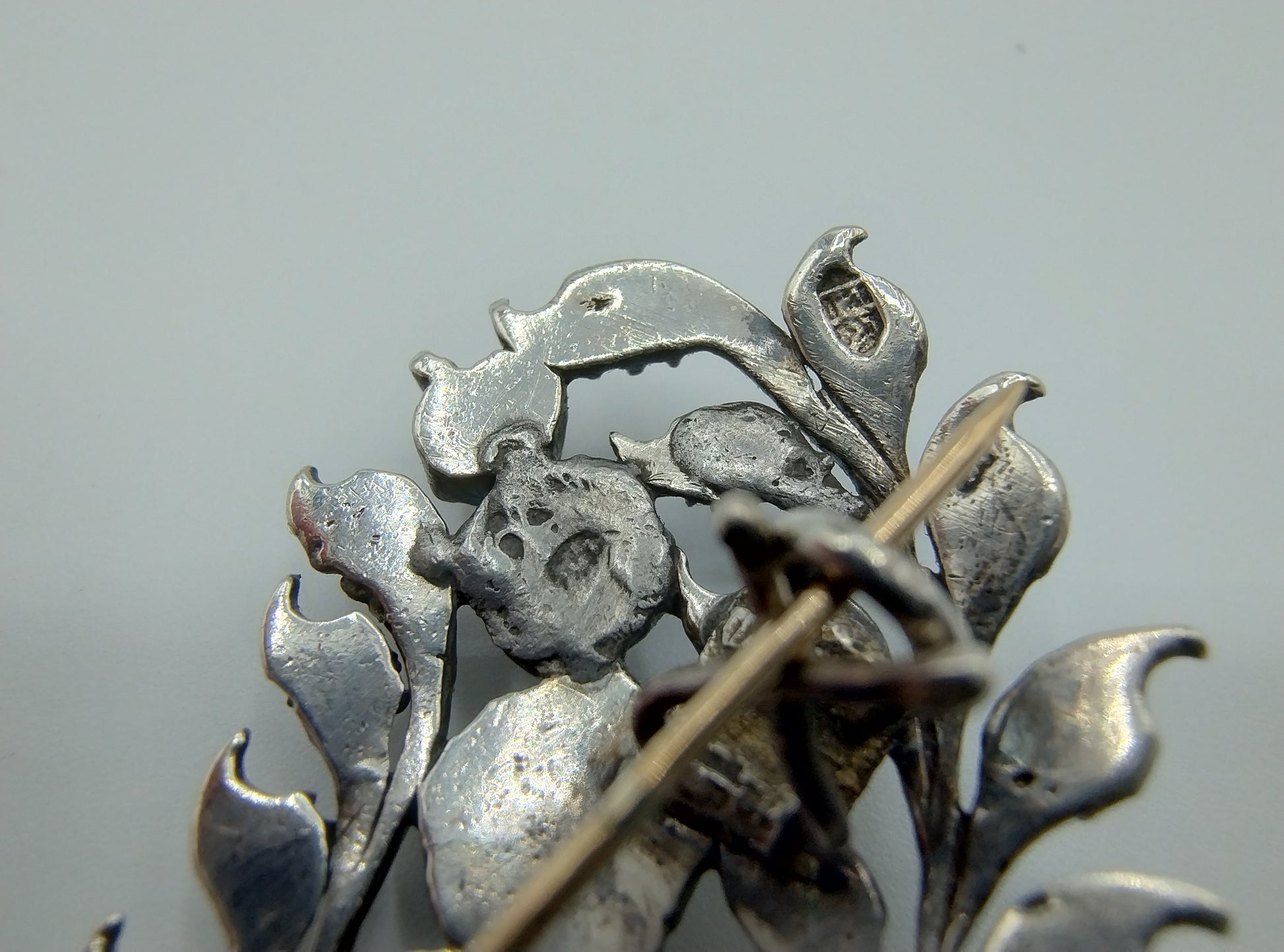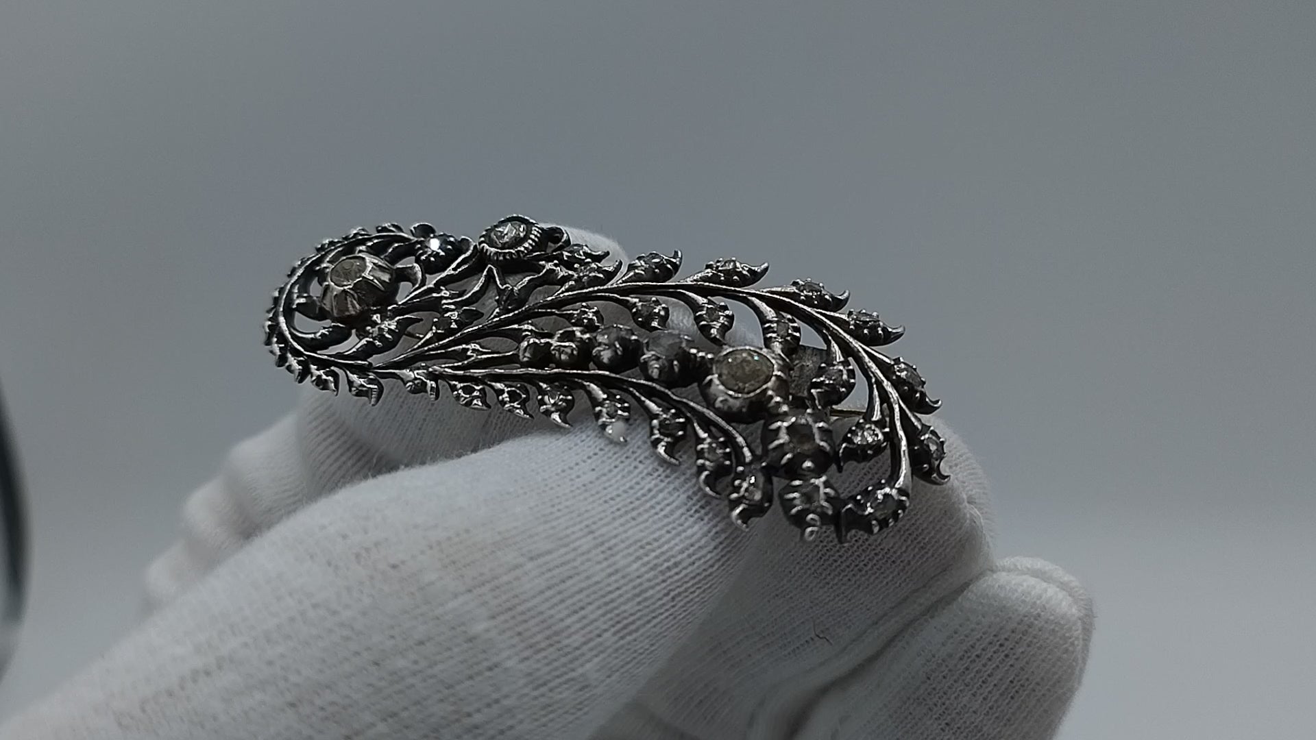 Zilveren veerbroche bezet met ca. 25 roosdiamanten, 19e eeuws
