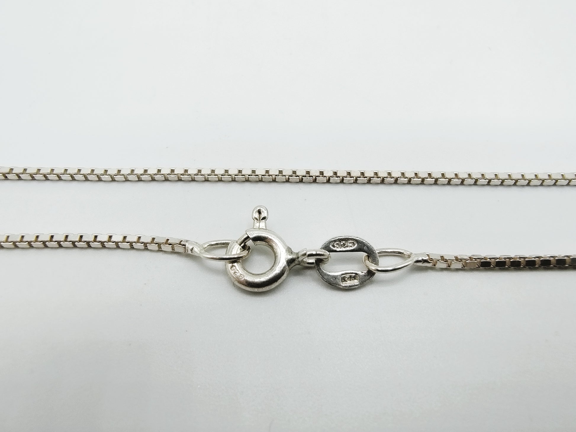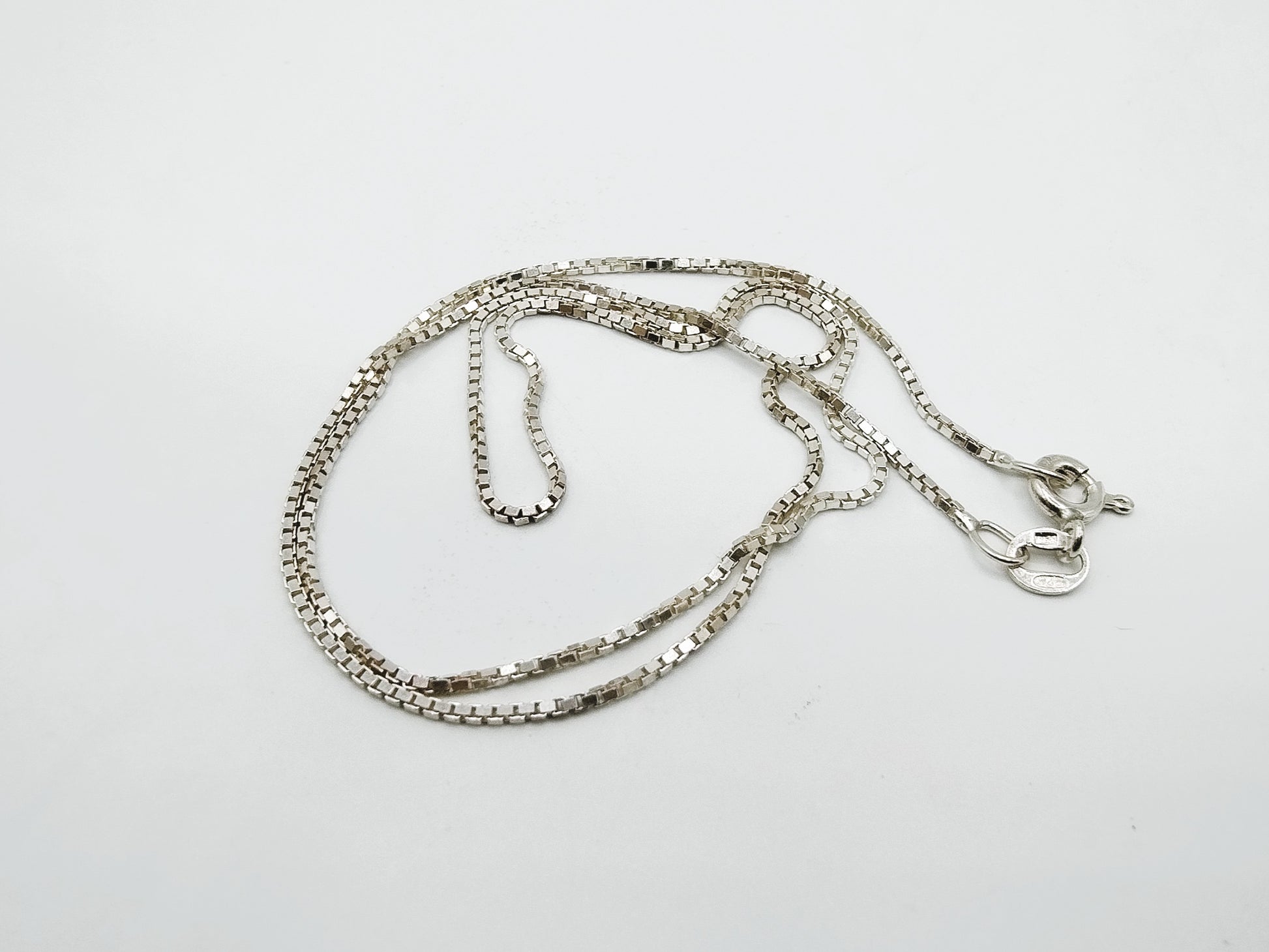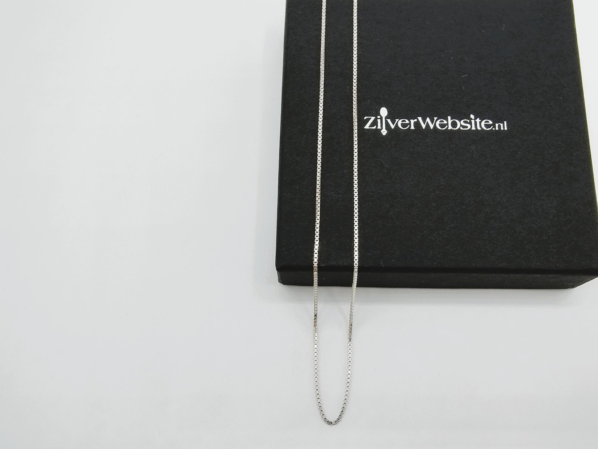 Zilveren venetiaans collier met een schakelbreedte van <1 mm.