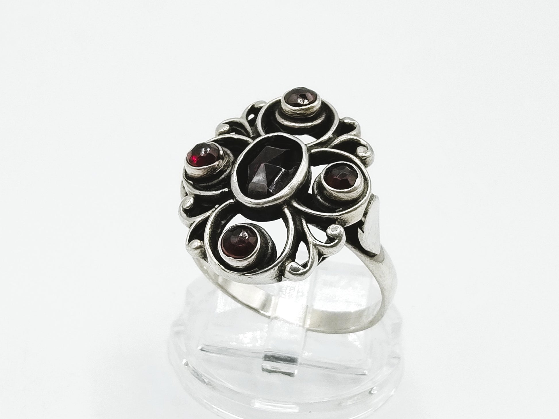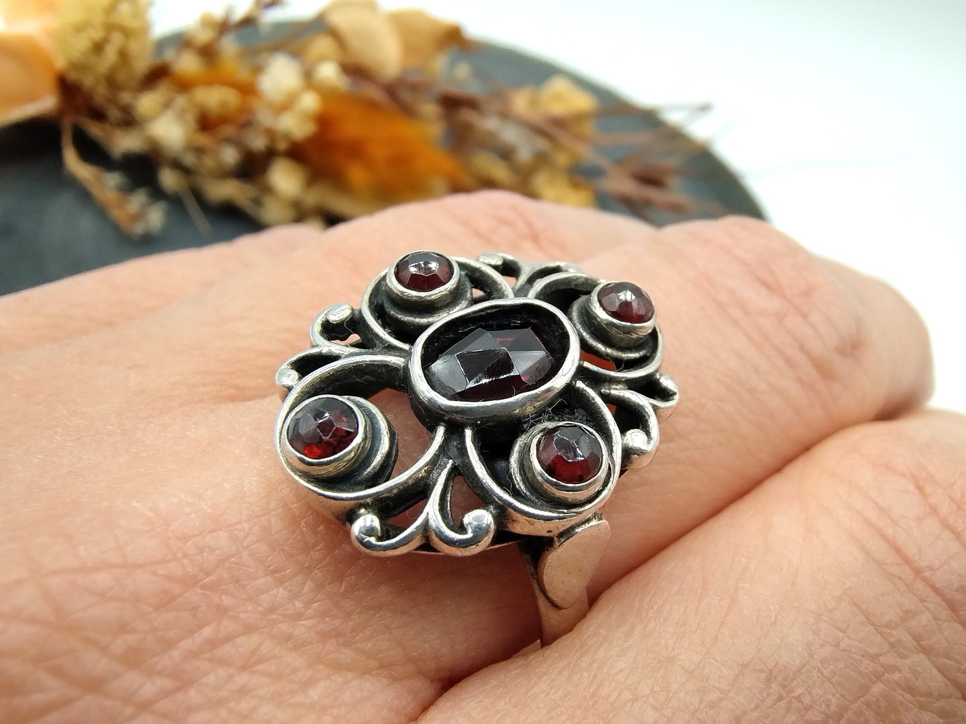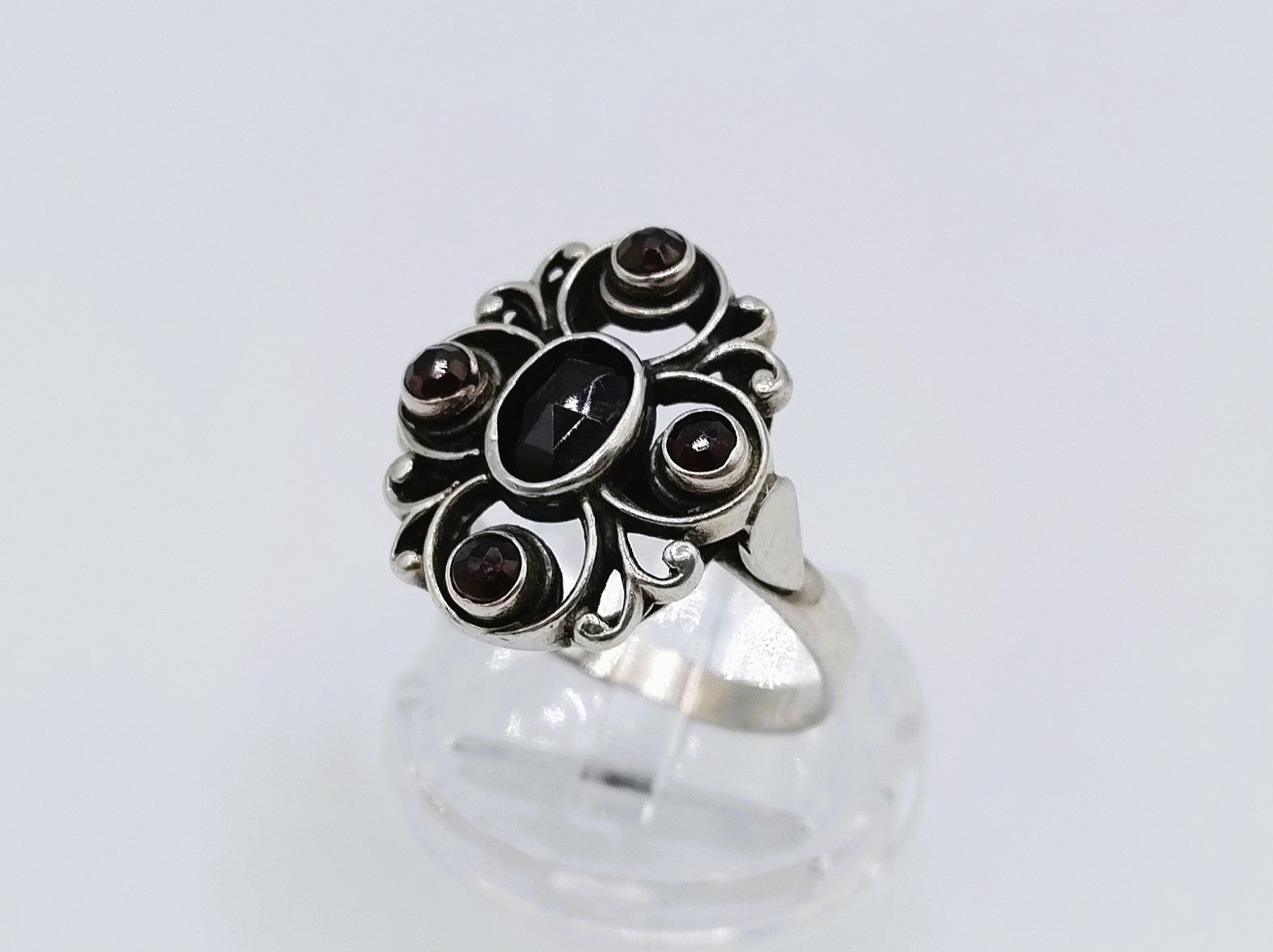 Zilveren vintage ring met 5 geslepen granaten, 19,5 mm