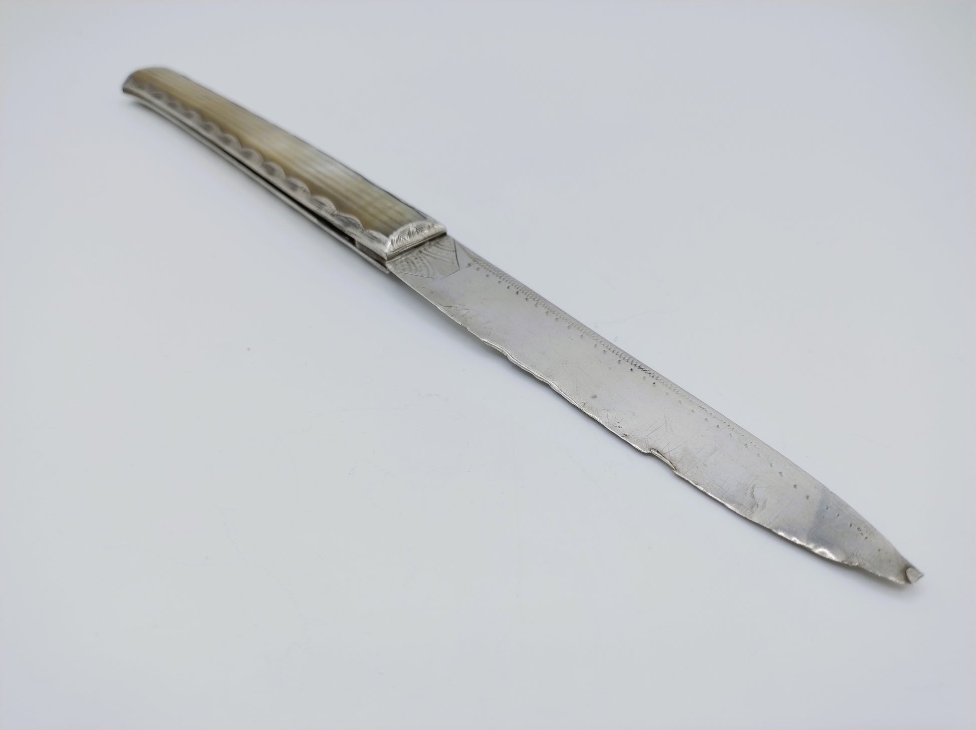 Het mes heeft leeftijdsgebonden gebruikssporen, zie hiervoor ook de foto's.