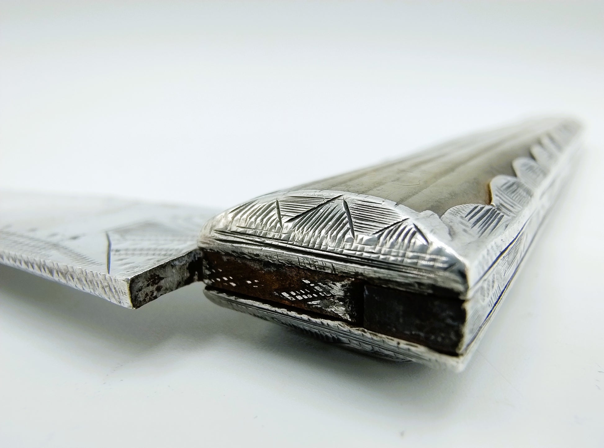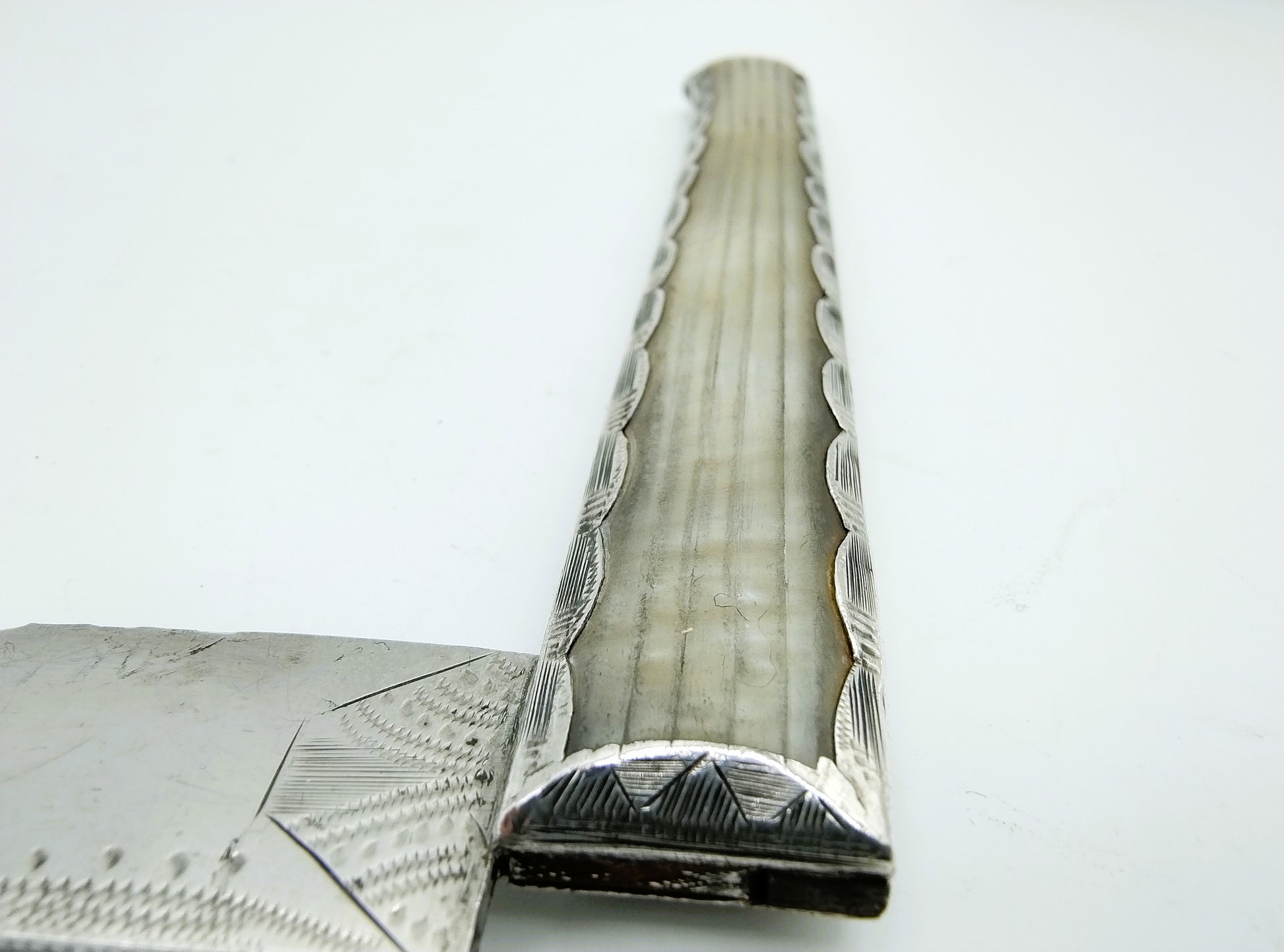 Het lemmet is fijn gegraveerd.