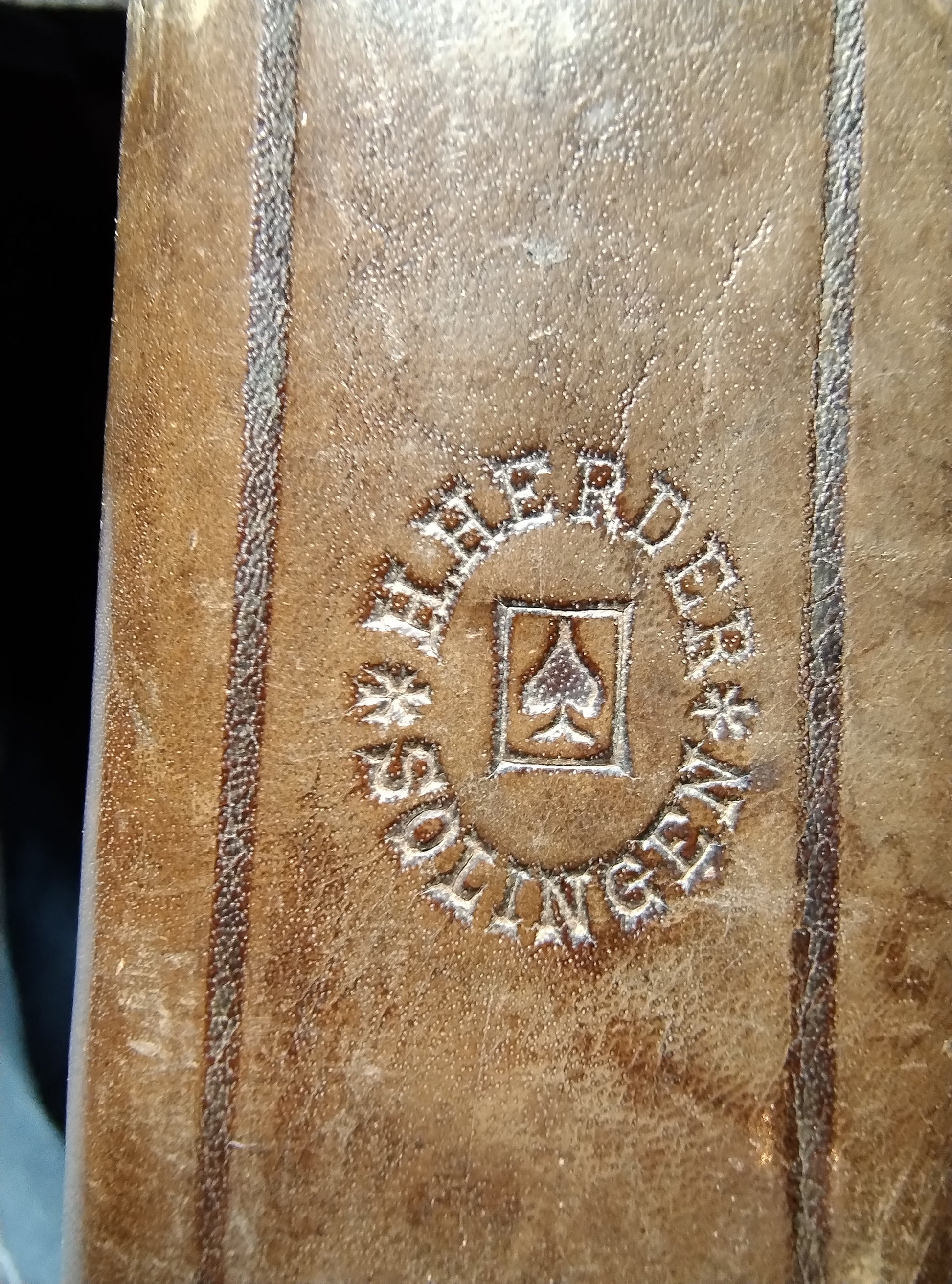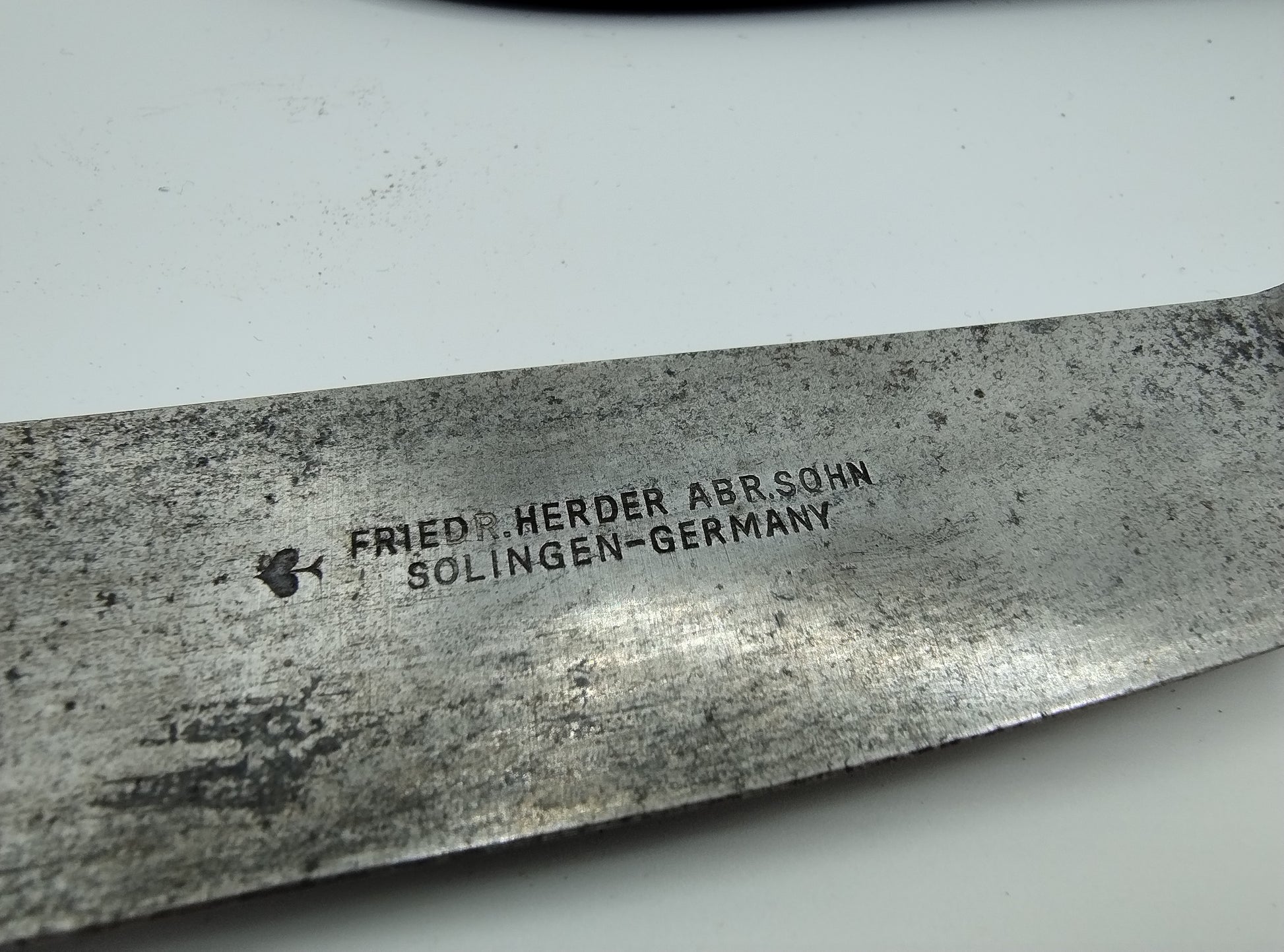 Het leren foedraal is ook afkomstig van F. Herder is zo gekeurd. Behoort origineel bij het mes.