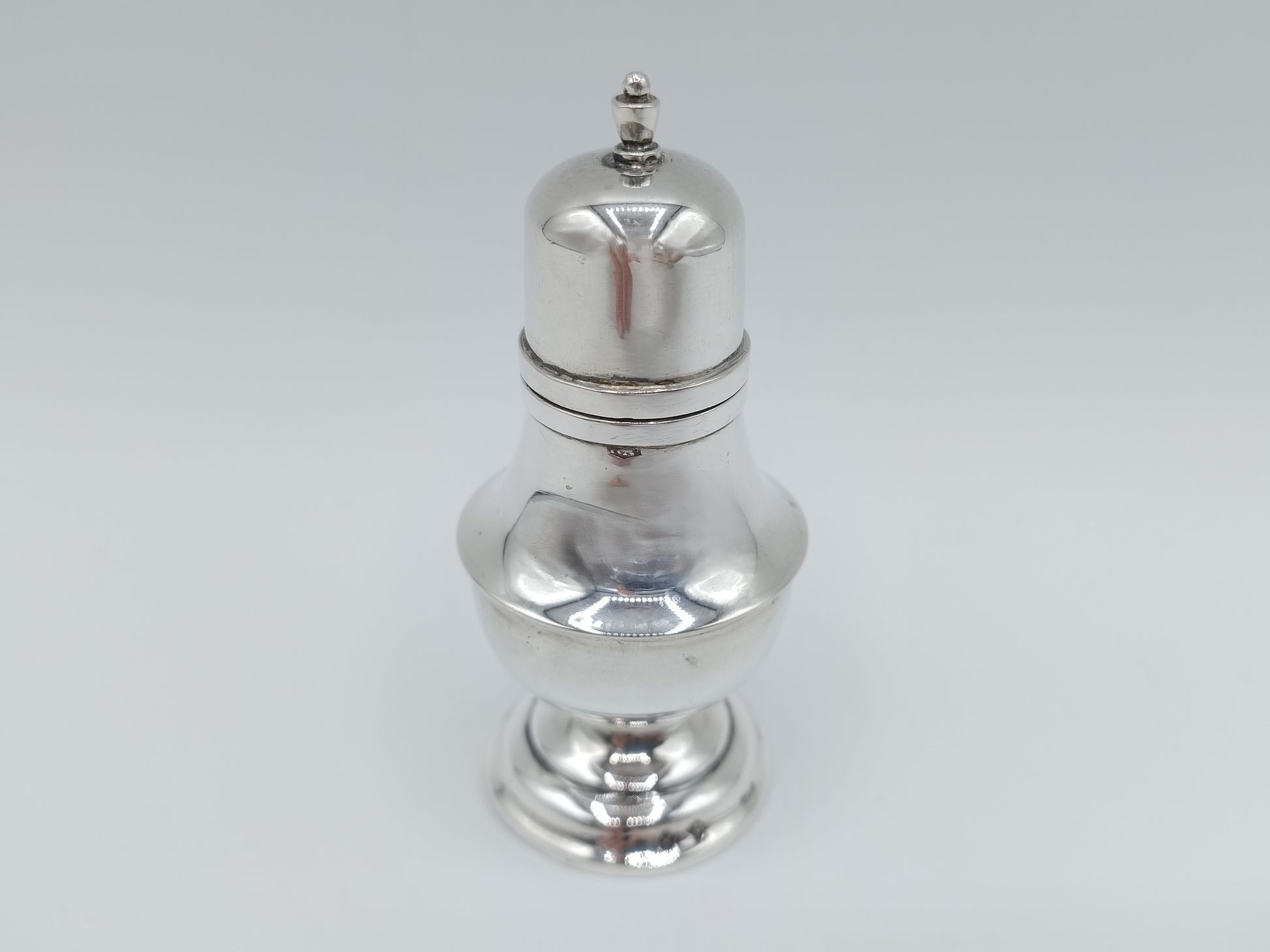 Zilveren zout- of peperstrooier, gemaakt in het jaar 1932 door een onbekende zilversmid.